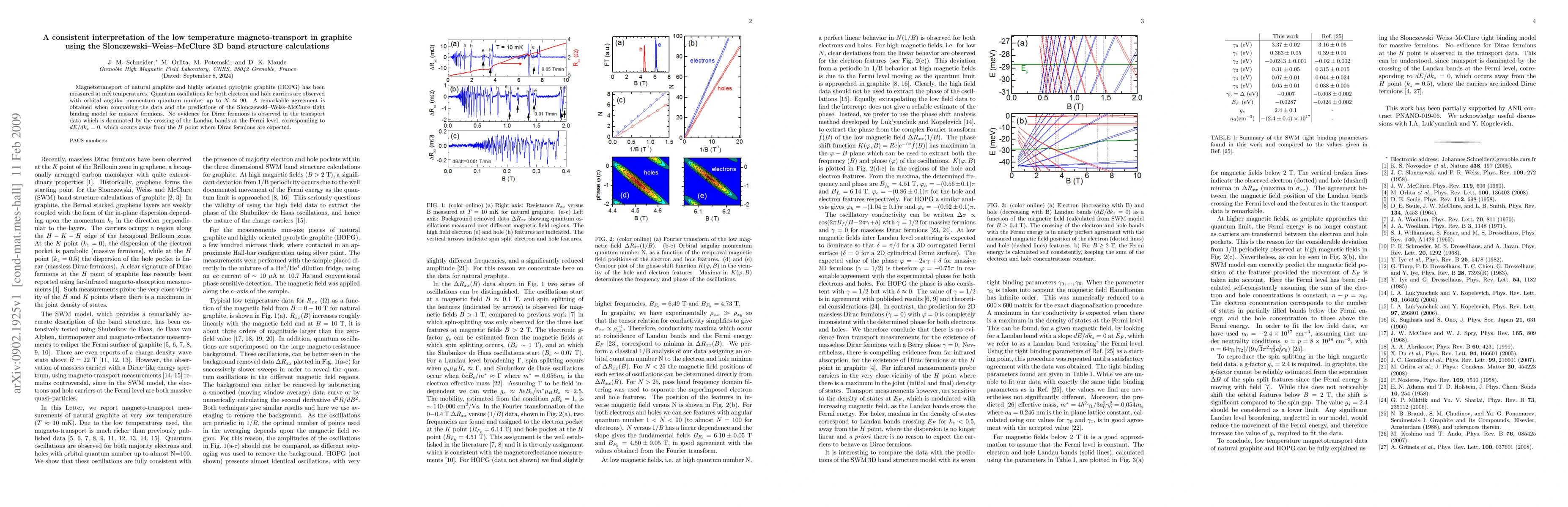 This study measures magnetotransport in natural graphite and HOPG at mK temperatures, observing quantum oscillations up to $N\approx90$. The Slonczewski--Weiss--McClure model accurately predicts the data, showing no evidence for Dirac fermions, instead attributing transport to massive fermions due to Landau band crossing away from the $H$ point.