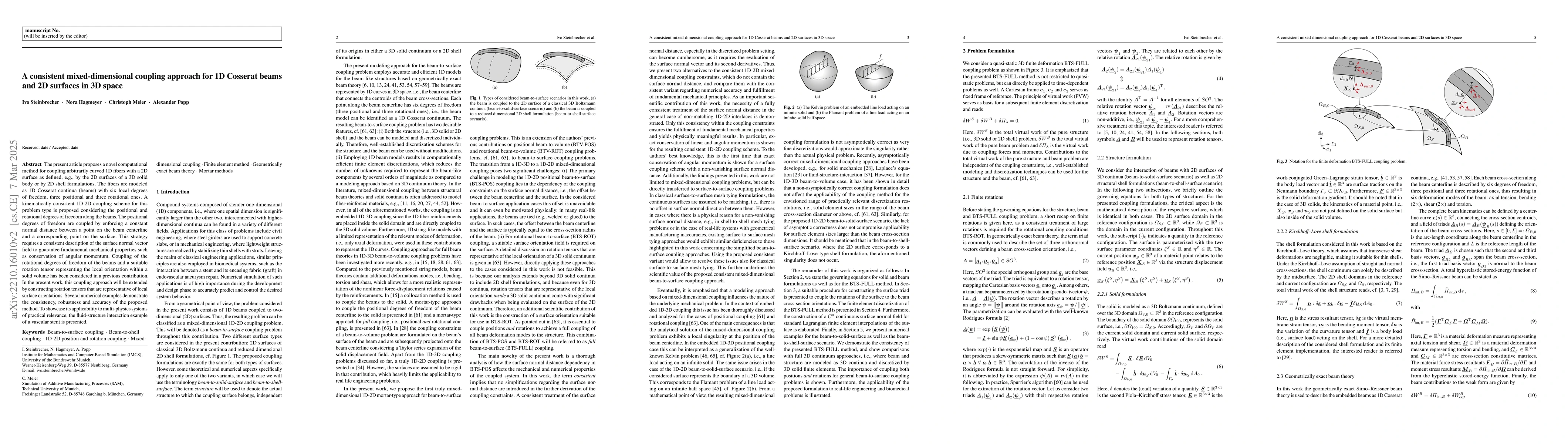 This paper presents a novel computational method for coupling 1D Cosserat beams with the 2D surface of a 3D solid, employing a consistent mixed-dimensional coupling scheme that ensures conservation of angular momentum. Numerical examples demonstrate the method's effectiveness, including a fluid-structure interaction application for a vascular stent.