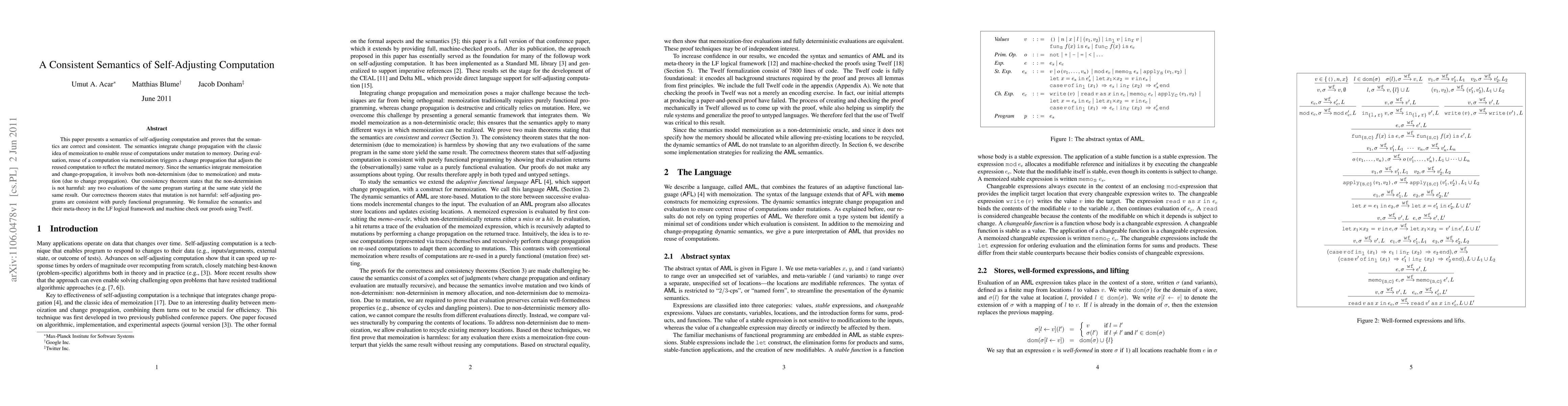 A research paper establishes a consistent semantics for self-adjusting computation, proving its correctness and consistency while integrating change propagation with memoization.
