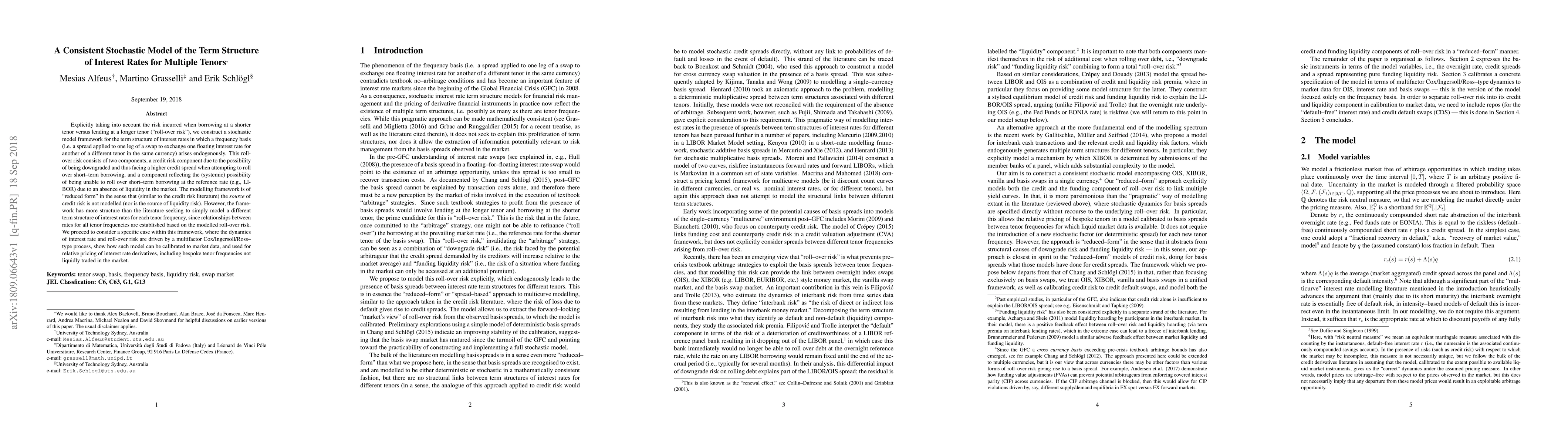 Explicitly taking into account the risk incurred when borrowing at a shorter tenor versus lending at a longer tenor ("roll-over risk"), we construct a stochastic model framework for the term structure of interest rates in which a frequency basis (i.e. a spread applied to one leg of a swap to exchange one floating interest rate for another of a different tenor in the same currency) arises endogenously. This rollover risk consists of two components, a credit risk component due to the possibility of being downgraded and thus facing a higher credit spread when attempting to roll over short-term borrowing, and a component reflecting the (systemic) possibility of being unable to roll over short-term borrowing at the reference rate (e.g., LIBOR) due to an absence of liquidity in the market. The modelling framework is of "reduced form" in the sense that (similar to the credit risk literature) the source of credit risk is not modelled (nor is the source of liquidity risk). However, the framework has more structure than the literature seeking to simply model a different term structure of interest rates for each tenor frequency, since relationships between rates for all tenor frequencies are established based on the modelled roll-over risk. We proceed to consider a specific case within this framework, where the dynamics of interest rate and roll-over risk are driven by a multifactor Cox/Ingersoll/Ross-type process, show how such model can be calibrated to market data, and used for relative pricing of interest rate derivatives, including bespoke tenor frequencies not liquidly traded in the market.