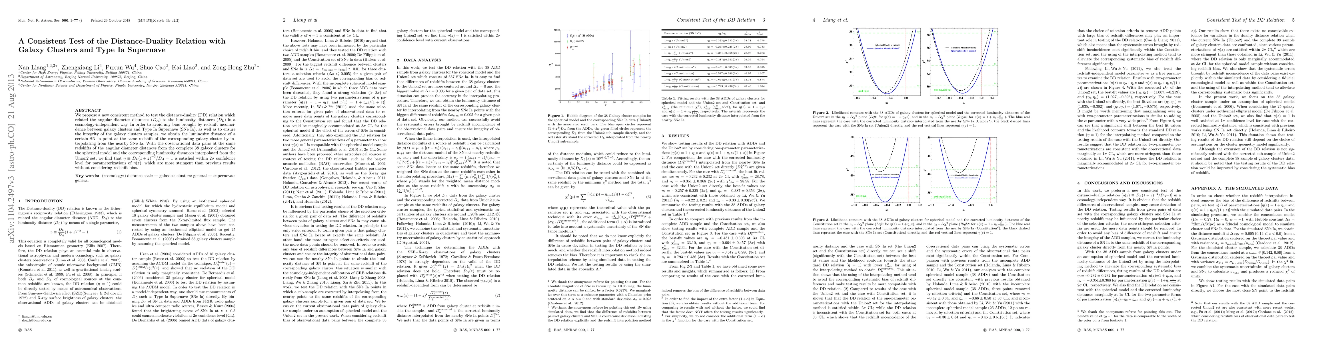 Researchers developed a new method to test the distance-duality relation in cosmology using galaxy clusters and Type Ia supernovae, finding that it holds within 2-sigma confidence level without redshift bias.