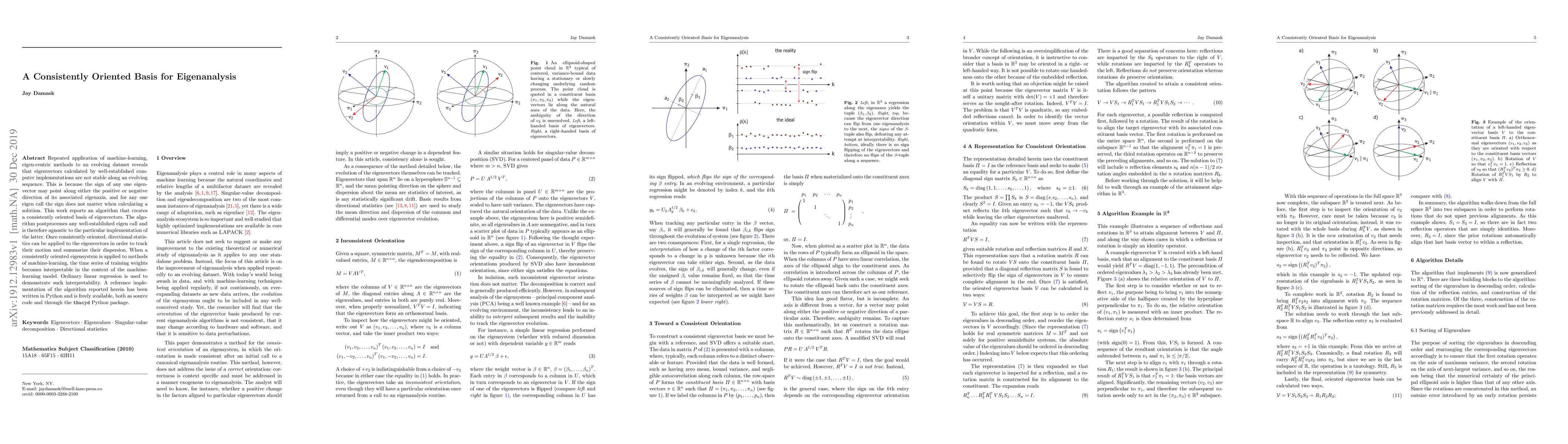 This paper presents an algorithm to create a consistently oriented basis for eigenvectors, addressing the instability of signs in eigen-centric methods. The algorithm postprocesses existing eigen-calculations to ensure stable orientation, enabling interpretable time series of training weights in machine learning models, demonstrated through ordinary linear regression.