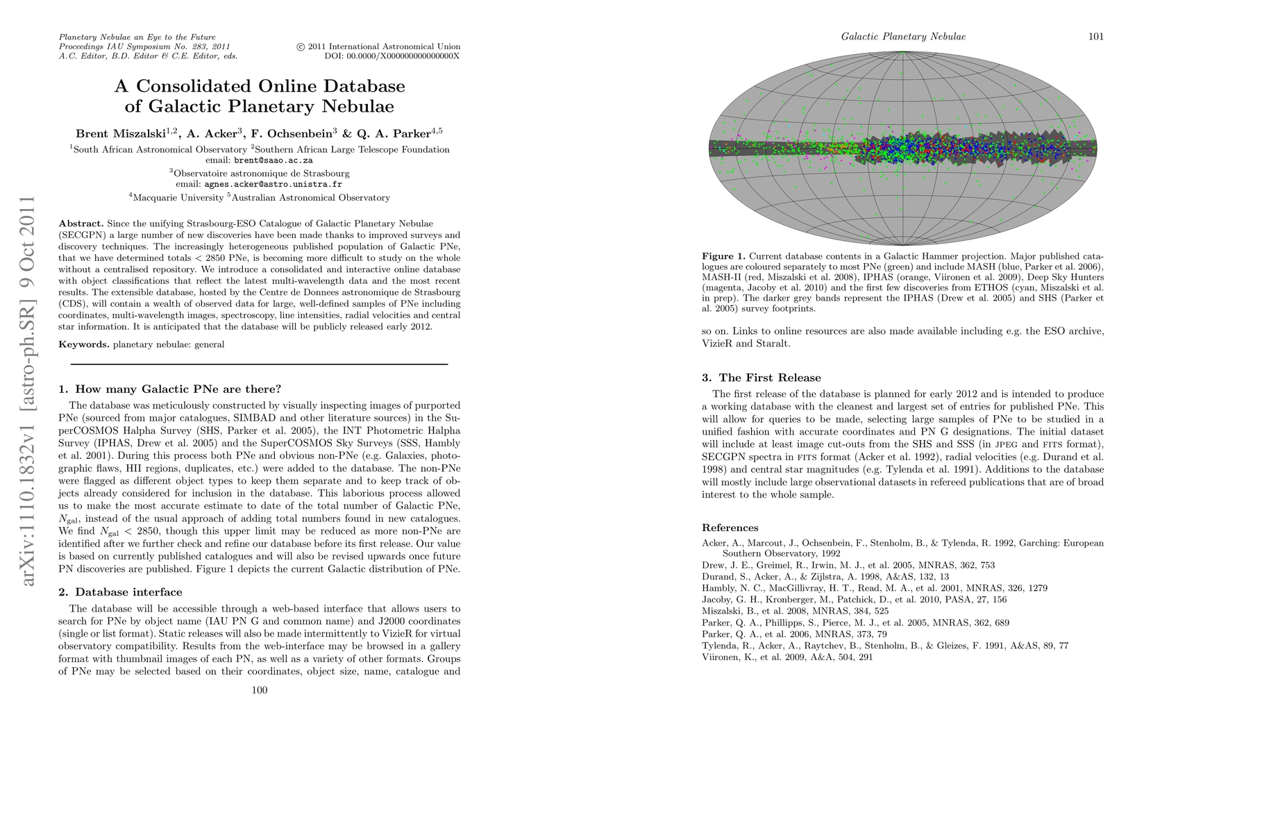 Since the unifying Strasbourg-ESO Catalogue of Galactic Planetary Nebulae (SECGPN) a large number of new discoveries have been made thanks to improved surveys and discovery techniques. The increasingly heterogeneous published population of Galactic PNe, that we have determined totals < 2850 PNe, is becoming more difficult to study on the whole without a centralised repository. We introduce a consolidated and interactive online database with object classifications that reflect the latest multi-wavelength data and the most recent results. The extensible database, hosted by the Centre de Donnees astronomique de Strasbourg (CDS), will contain a wealth of observed data for large, well-defined samples of PNe including coordinates, multi-wavelength images, spectroscopy, line intensities, radial velocities and central star information. It is anticipated that the database will be publicly released early 2012.