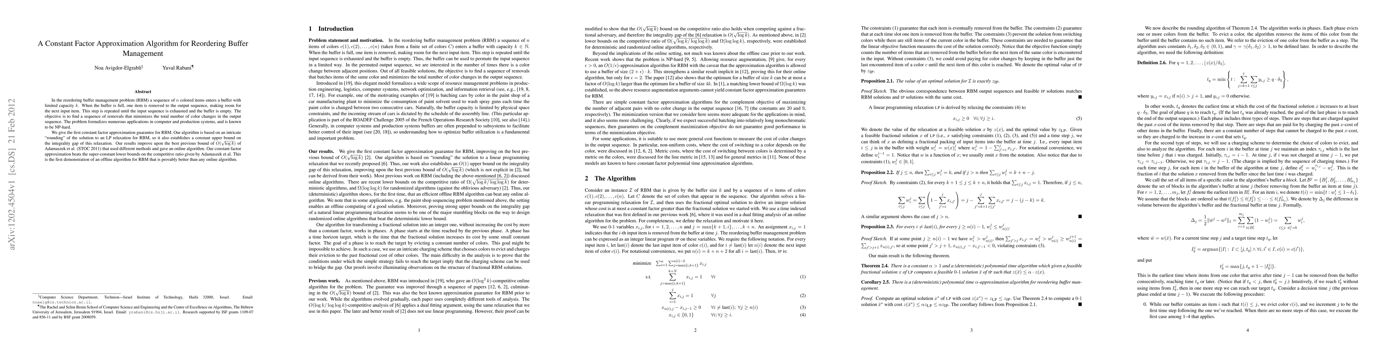 Researchers developed a constant factor approximation algorithm for reordering buffer management, improving upon previous bounds and demonstrating an offline algorithm that beats online algorithms in terms of competitiveness.