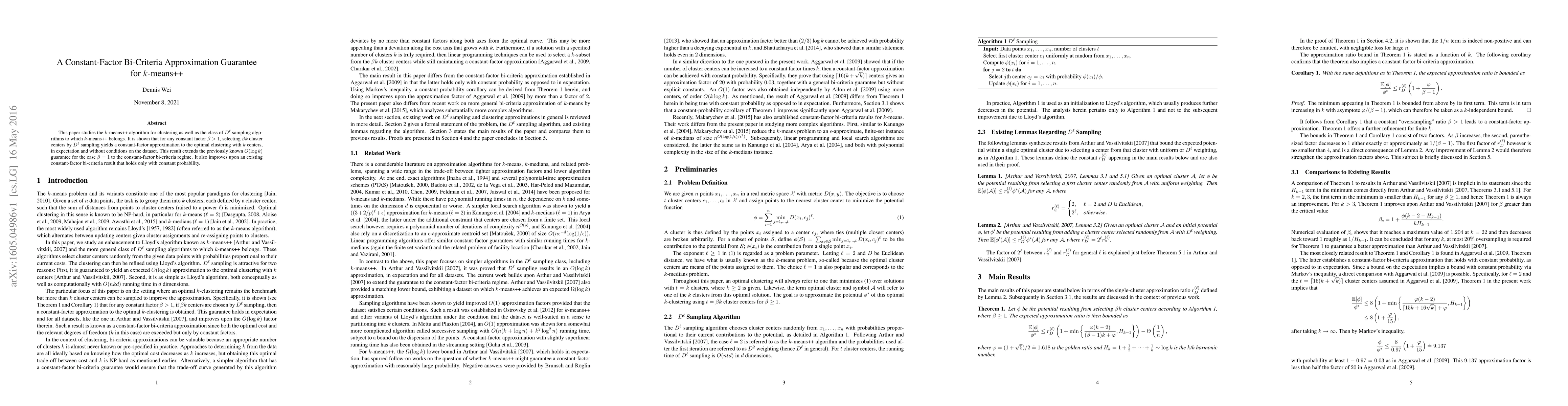 This paper provides a constant-factor bi-criteria approximation guarantee for the $k$-means++ clustering algorithm, showing that selecting $\beta k$ cluster centers via $D^\ell$ sampling achieves a constant-factor approximation to the optimal $k$-cluster solution, in expectation and without dataset conditions. This extends previous $O(\log k)$ guarantees to a broader regime.
