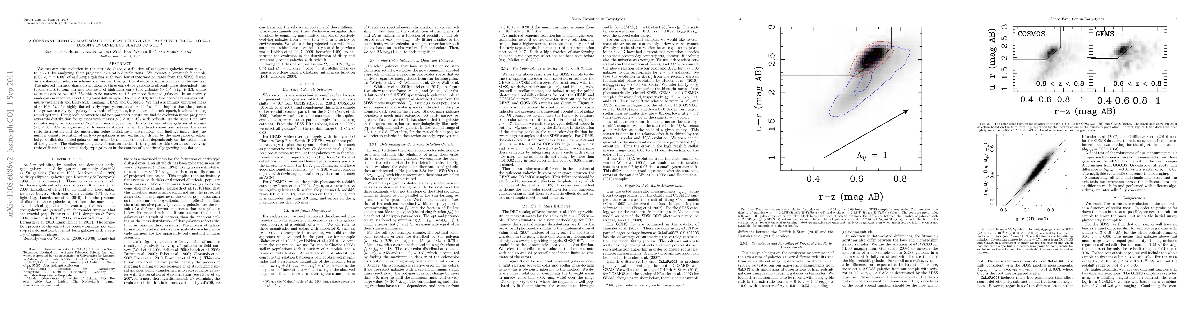 This paper investigates the intrinsic shape distribution of early-type galaxies across redshifts from z=1 to z=0, finding no significant evolution in the shape of high-mass galaxies (>3e10 M_sun). Despite an increase in number density, a universal mass ceiling of ~1e11 M_sun governs the flattening of these galaxies, suggesting a balanced mix of bulge- and disk-dominated galaxies driven by stellar mass.
