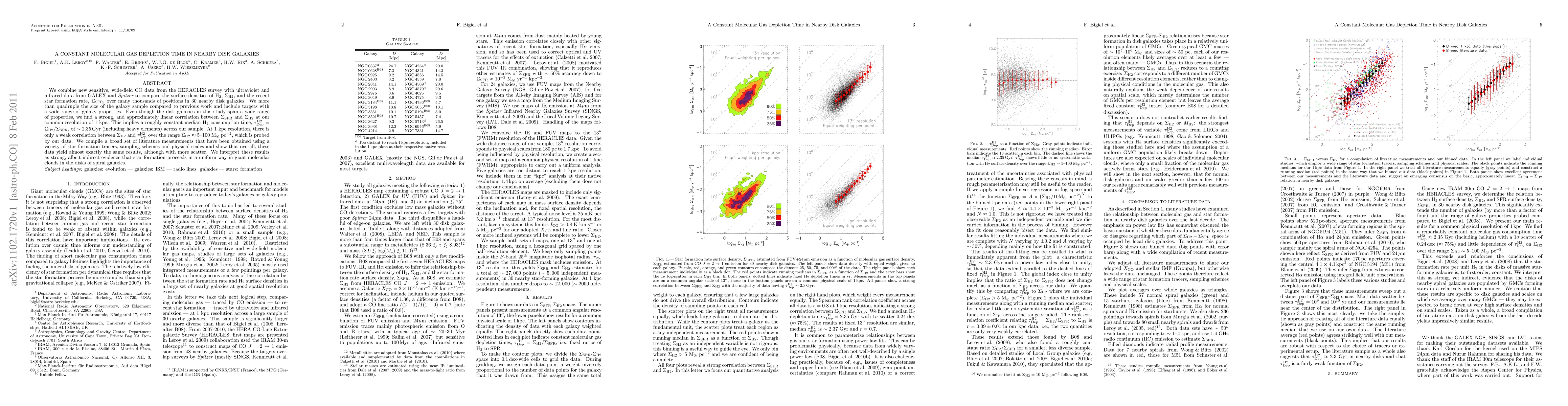 We combine new sensitive, wide-field CO data from the HERACLES survey with ultraviolet and infrared data from GALEX and Spitzer to compare the surface densities of H2, Sigma_H2, and recent star formation rate, Sigma_SFR, over many thousands of positions in 30 nearby disk galaxies. We more than quadruple the size of the galaxy sample compared to previous work and include targets with a wide range of galaxy properties. Even though the disk galaxies in this study span a wide range of properties, we find a strong and approximately linear correlation between Sigma_SFR and Sigma_H2 at our common resolution of 1kpc. This implies a roughly constant median H2 consumption time, tau_H2 = Sigma_H2 / Sigma_SFR, of ~2.35Gyr (including heavy elements) across our sample. At 1kpc resolution, there is only a weak correlation between Sigma_H2 and tau_H2 over the range Sigma_H2~5-100M_sun/pc^2, which is probed by our data. We compile a broad set of literature measurements that have been obtained using a variety of star formation tracers, sampling schemes and physical scales and show that overall, these data yield almost exactly the same results, although with more scatter. We interpret these results as strong, albeit indirect evidence that star formation proceeds in a uniform way in giant molecular clouds in the disks of spiral galaxies.