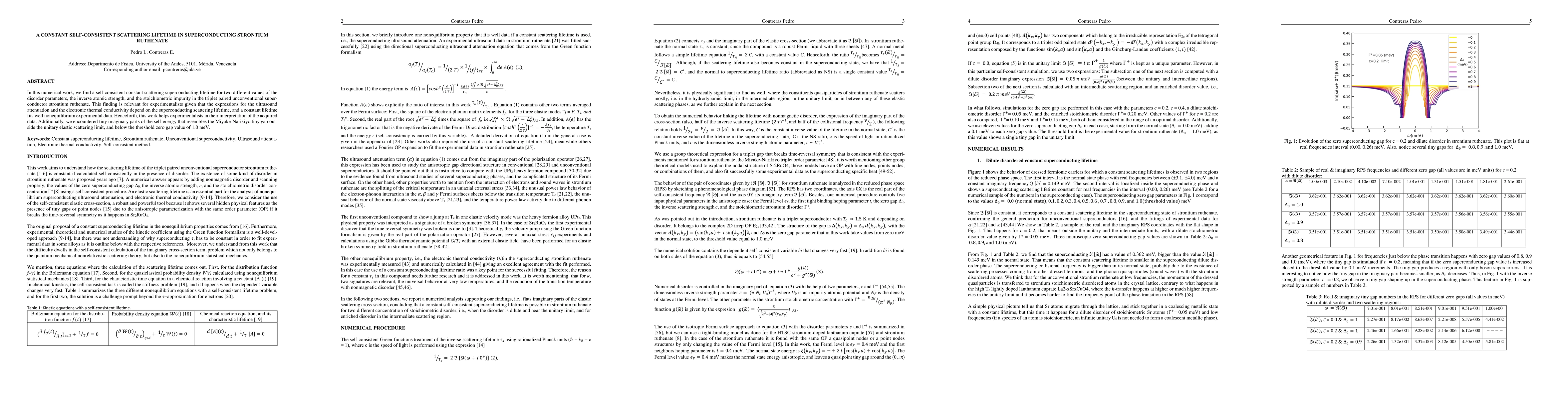 Summary: This study reveals a self-consistent constant scattering lifetime in superconducting strontium ruthenate for varying disorder parameters, aiding experimentalists in interpreting ultrasound attenuation and thermal conductivity data. Additionally, the research identifies a tiny imaginary part in the self-energy resembling a Miyake-Narikiyo tiny gap.