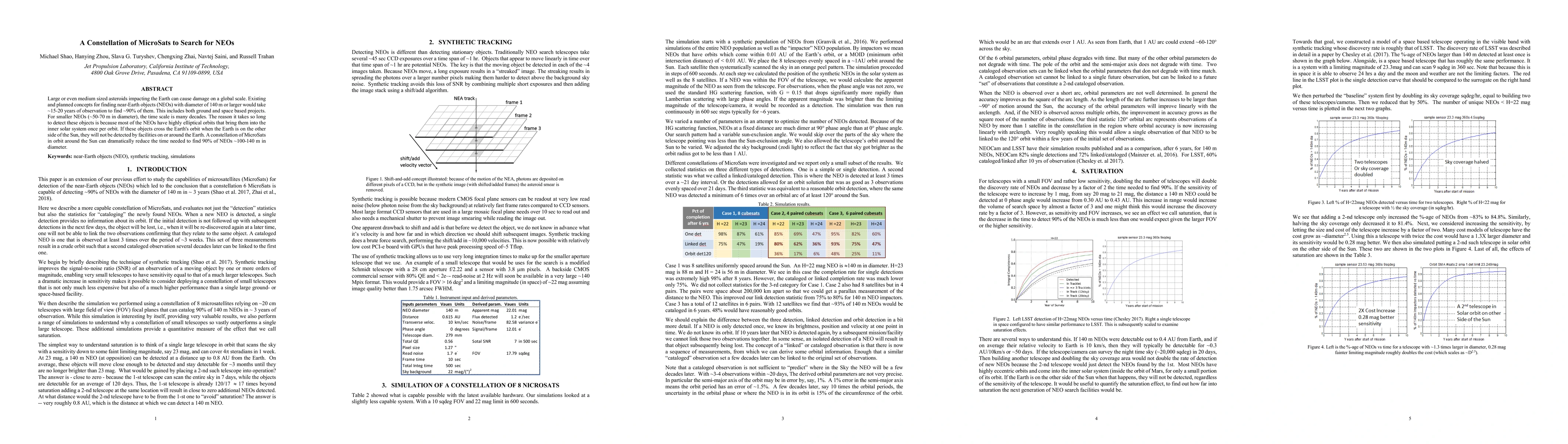 A constellation of MicroSats can detect 90% of near-Earth objects (NEOs) ~100-140 m in diameter in just a few years, significantly reducing the time scale compared to existing ground and space-based projects.