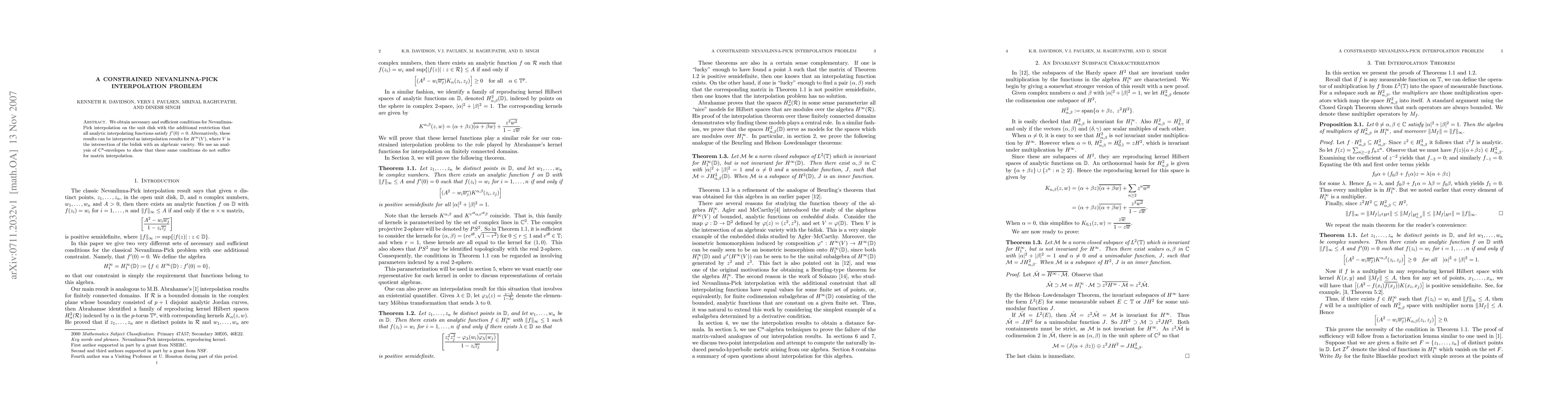 The work distinguishes itself by connecting C*-algebraic properties with specific interpolation conditions, offering a fresh perspective on the classical Nevanlinna-Pick problem.
