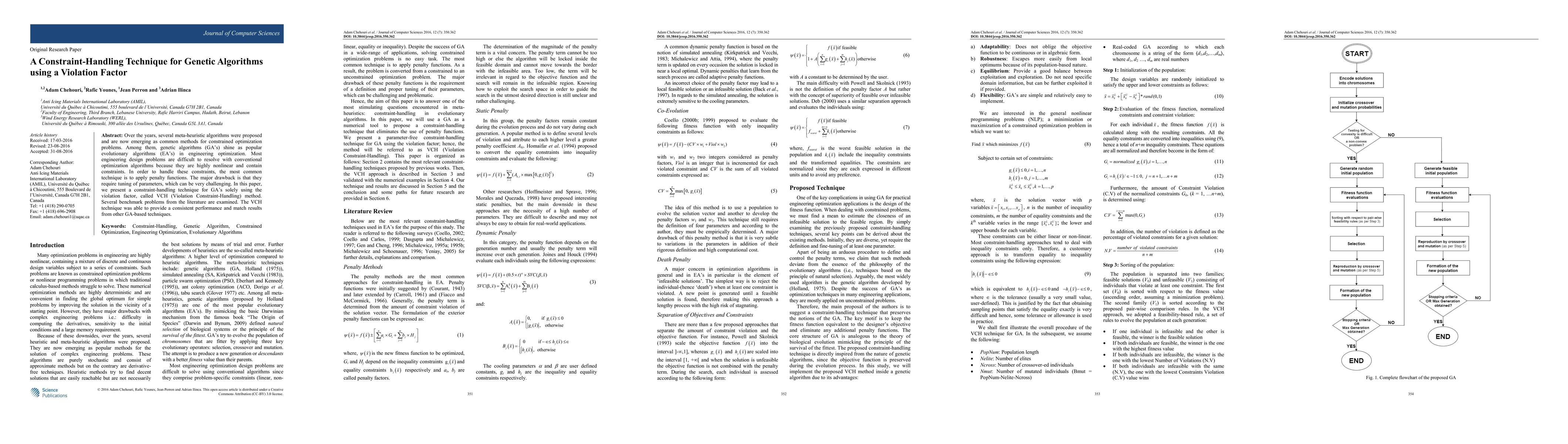 This paper introduces a novel constraint-handling technique for genetic algorithms called VCH, which uses a violation factor instead of penalty functions to manage constraints in optimization problems. The VCH method demonstrates consistent performance and comparable results to other GA-based techniques on benchmark problems.