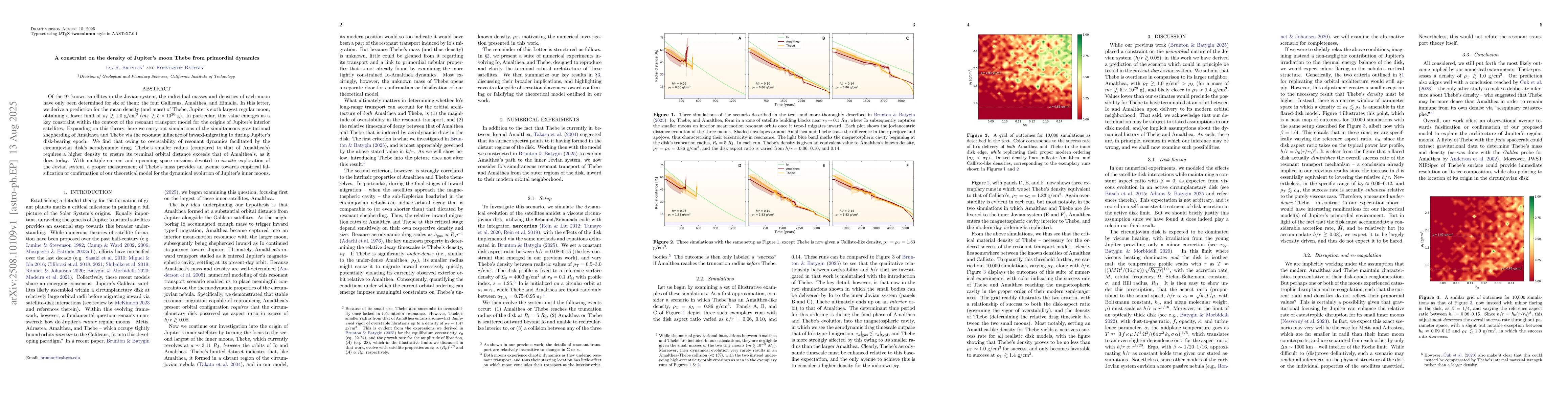 Of the 97 known satellites in the Jovian system, the individual masses and densities of each moon have only been determined for six of them: the four Galileans, Amalthea, and Himalia. In this letter, we derive a prediction for the mean density (and mass) of Thebe, Jupiter's sixth largest regular moon, obtaining a lower limit of $\rho_\text{T}\gtrsim1.0$ g/cm$^3$ ($m_\text{T}\gtrsim 5\times 10^{20}$ g). In particular, this value emerges as a key constraint within the context of the resonant transport model for the origins of Jupiter's interior satellites. Expanding on this theory, here we carry out simulations of the simultaneous gravitational shepherding of Amalthea and Thebe via the resonant influence of inward-migrating Io during Jupiter's disk-bearing epoch. We find that owing to overstability of resonant dynamics facilitated by the circumjovian disk's aerodynamic drag, Thebe's smaller radius (compared to that of Amalthea's) requires a higher density to ensure its terminal orbital distance exceeds that of Amalthea's, as it does today. With multiple current and upcoming space missions devoted to in situ exploration of the Jovian system, a proper measurement of Thebe's mass provides an avenue towards empirical falsification or confirmation of our theoretical model for the dynamical evolution of Jupiter's inner moons.