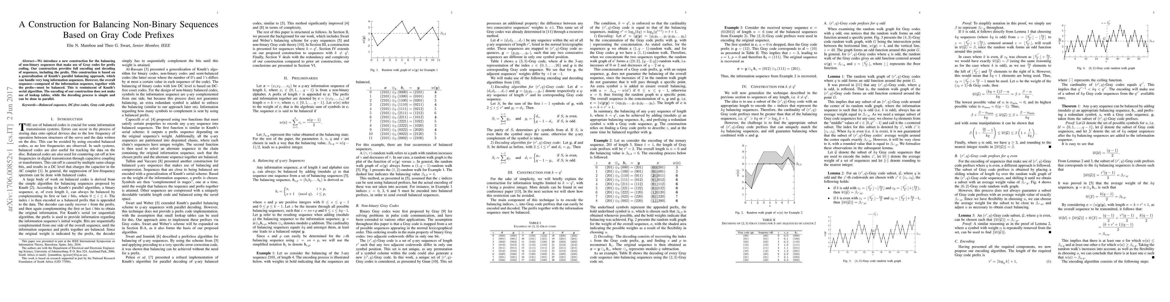 This paper presents a novel method for balancing non-binary sequences using Gray codes for prefix coding, generalizing Knuth's parallel balancing approach. The construction enables full encoding and decoding without lookup tables, with simple parallel decoding.