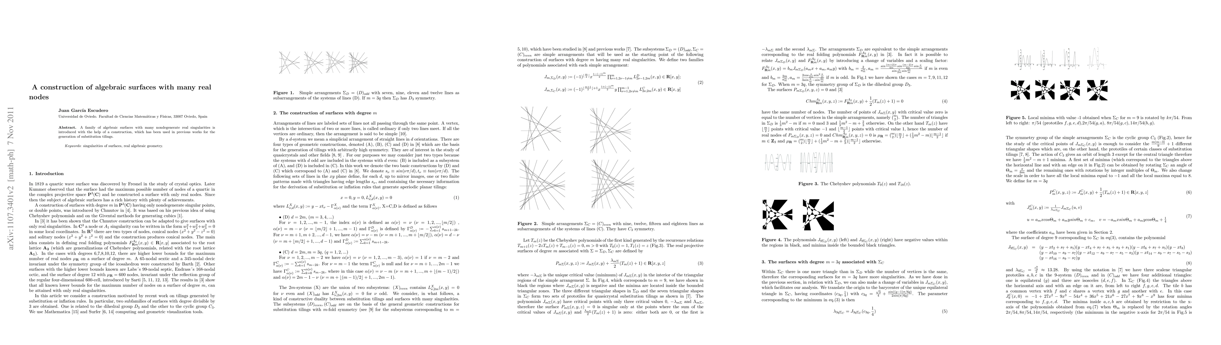 Summary: This paper introduces a family of algebraic surfaces characterized by numerous real nodes, utilizing a construction method previously employed for generating substitution tilings. The focus is on the generation of surfaces with many nondegenerate real singularities.