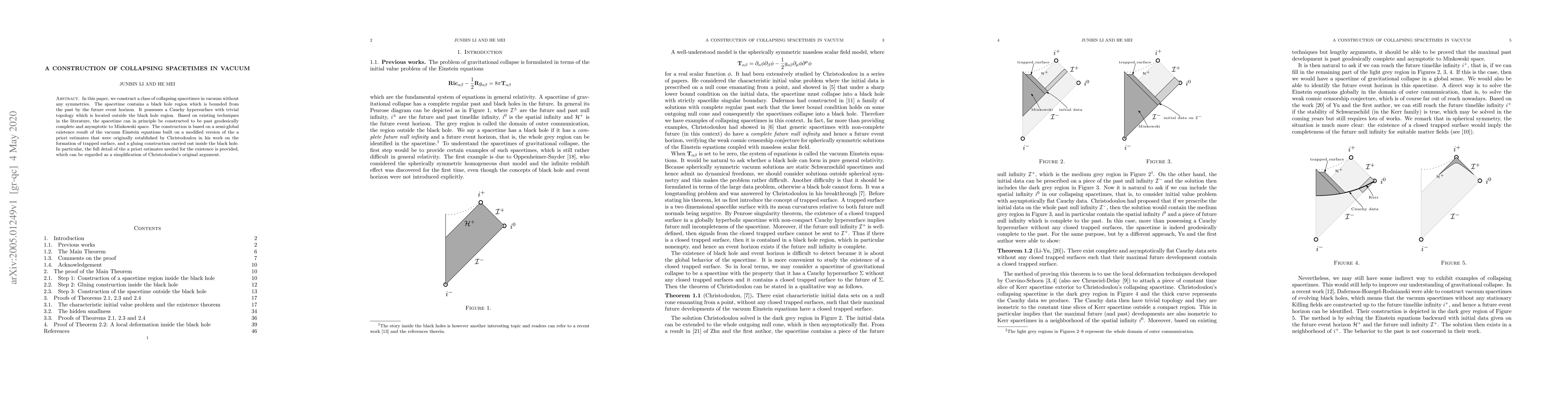 In this paper, we construct a class of collapsing spacetimes in vacuum without any symmetries. The spacetime contains a black hole region which is bounded from the past by the future event horizon. It possesses a Cauchy hypersurface with trivial topology which is located outside the black hole region. Based on existing techniques in the literature, the spacetime can in principle be constructed to be past geodesically complete and asymptotic to Minkowski space. The construction is based on a semi-global existence result of the vacuum Einstein equations built on a modified version of the a priori estimates that were originally established by Christodoulou in his work on the formation of trapped surface, and a gluing construction carried out inside the black hole. In particular, the full detail of the a priori estimates needed for the existence is provided, which can be regarded as a simplification of Christodoulou's original argument.