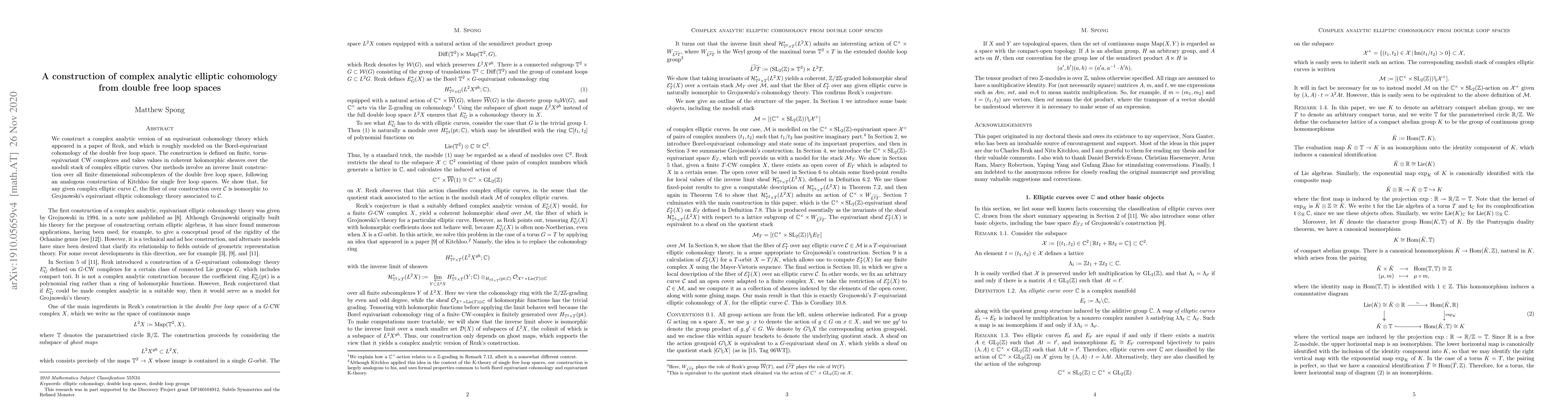 We construct a complex analytic version of an equivariant cohomology theory which appeared in a recent paper of Rezk, and which is roughly modeled on the Borel-equivariant cohomology of the double free loop space. The construction is defined on finite, torus-equivariant CW complexes and takes values in coherent holomorphic sheaves over the moduli stack of complex elliptic curves. Our methods involve an inverse limit construction over all finite dimensional subcomplexes of the double free loop space, following an analogous construction of Kitchloo for single free loop spaces. We show that, for any given complex elliptic curve $\mathcal{C}$, the fiber of our construction over $\mathcal{C}$ is isomorphic to Grojnowski's equivariant elliptic cohomology theory associated to $\mathcal{C}$.