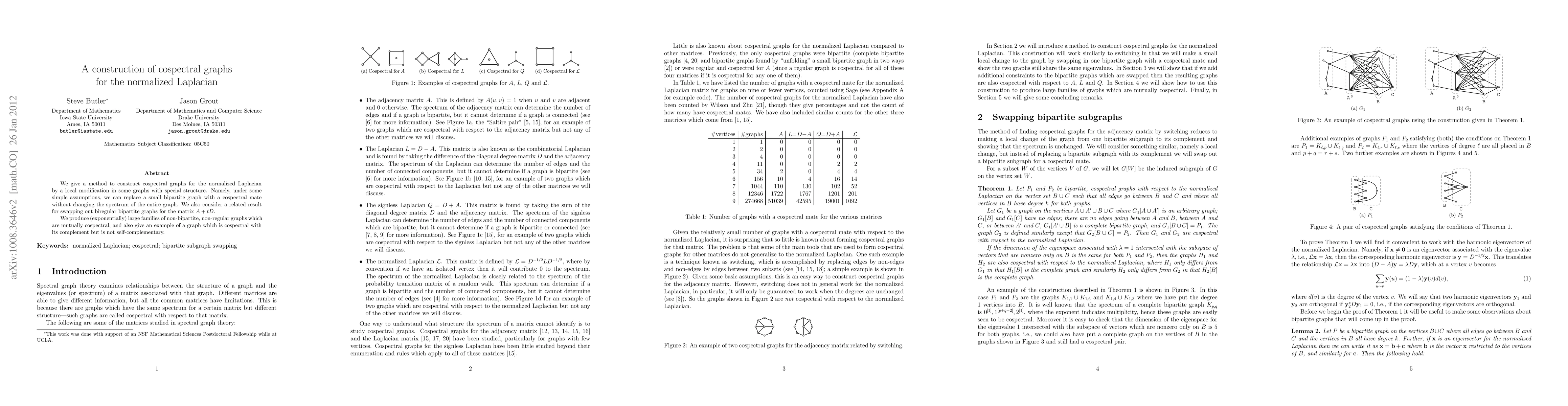 We give a method to construct cospectral graphs for the normalized Laplacian by a local modification in some graphs with special structure. Namely, under some simple assumptions, we can replace a small bipartite graph with a cospectral mate without changing the spectrum of the entire graph. We also consider a related result for swapping out biregular bipartite graphs for the matrix $A+tD$. We produce (exponentially) large families of non-bipartite, non-regular graphs which are mutually cospectral, and also give an example of a graph which is cospectral with its complement but is not self-complementary.