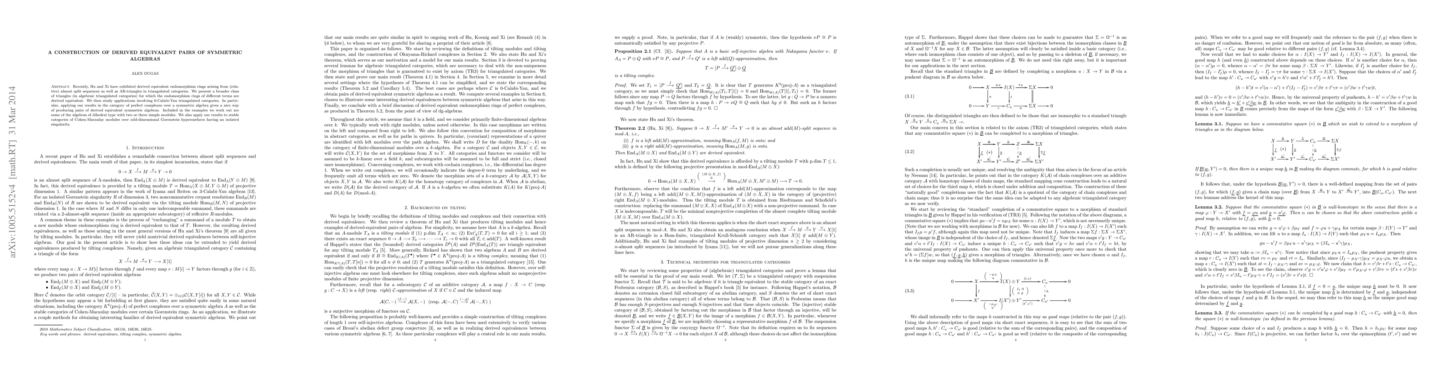 Recently, Hu and Xi have exhibited derived equivalent endomorphism rings arising from (relative) almost split sequences as well as AR-triangles in triangulated categories. We present a broader class of triangles (in algebraic triangulated categories) for which the endomorphism rings of different terms are derived equivalent. We then study applications involving 0-Calabi-Yau triangulated categories. In particular, applying our results in the category of perfect complexes over a symmetric algebra gives a nice way of producing pairs of derived equivalent symmetric algebras. Included in the examples we work out are some of the algebras of dihedral type with two or three simple modules. We also apply our results to stable categories of Cohen-Macaulay modules over odd-dimensional Gorenstein hypersurfaces having an isolated singularity.