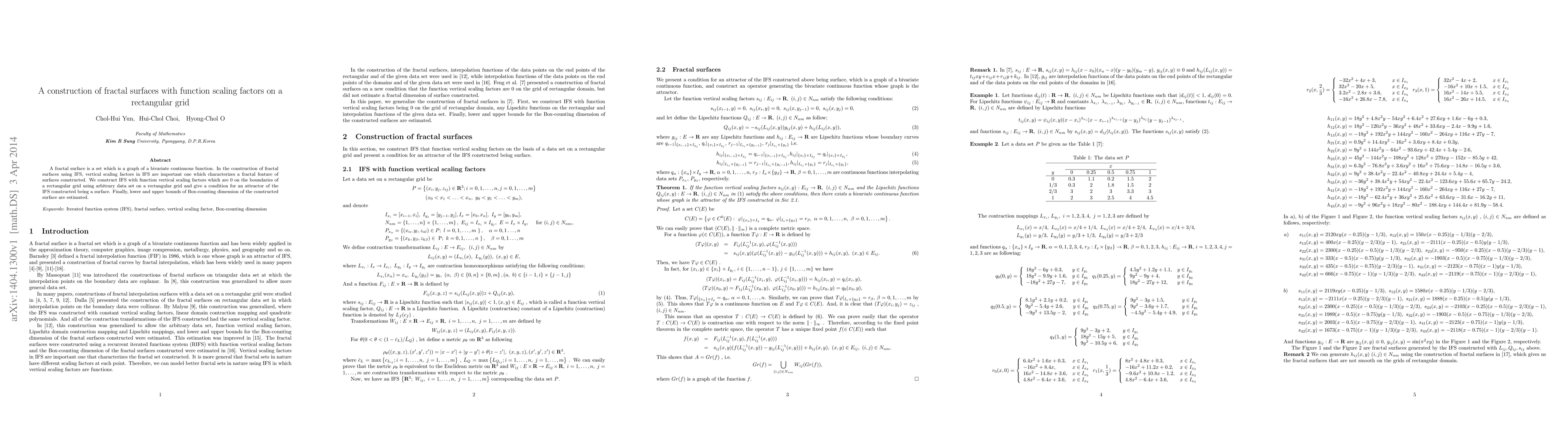 A fractal surface is a set which is a graph of a bivariate continuous function. In the construction of fractal surfaces using IFS, vertical scaling factors in IFS are important one which characterizes a fractal feature of surfaces constructed. We construct IFS with function vertical scaling factors which are 0 on the boundaries of a rectangular grid using arbitrary data set on a rectangular grid and give a condition for an attractor of the IFS constructed being a surface. Finally, lower and upper bounds of Box-counting dimension of the constructed surface are estimated.