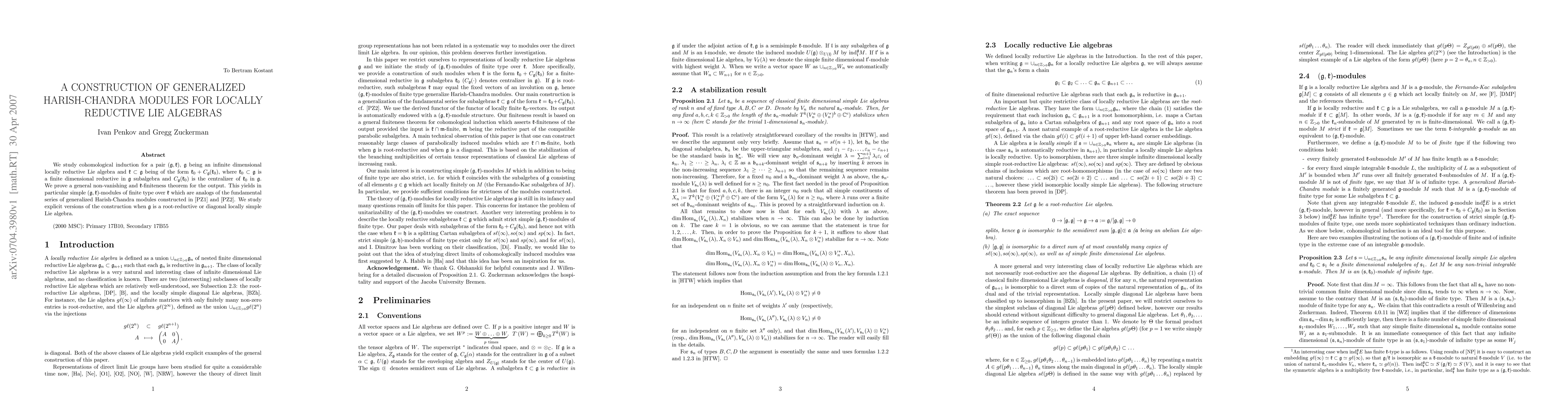 This paper investigates cohomological induction for locally reductive Lie algebras, proving a non-vanishing and $\frak k$-finiteness theorem. It constructs generalized Harish-Chandra modules for such algebras, providing analogs of the fundamental series and studying explicit cases for root-reductive or diagonal locally simple Lie algebras.
