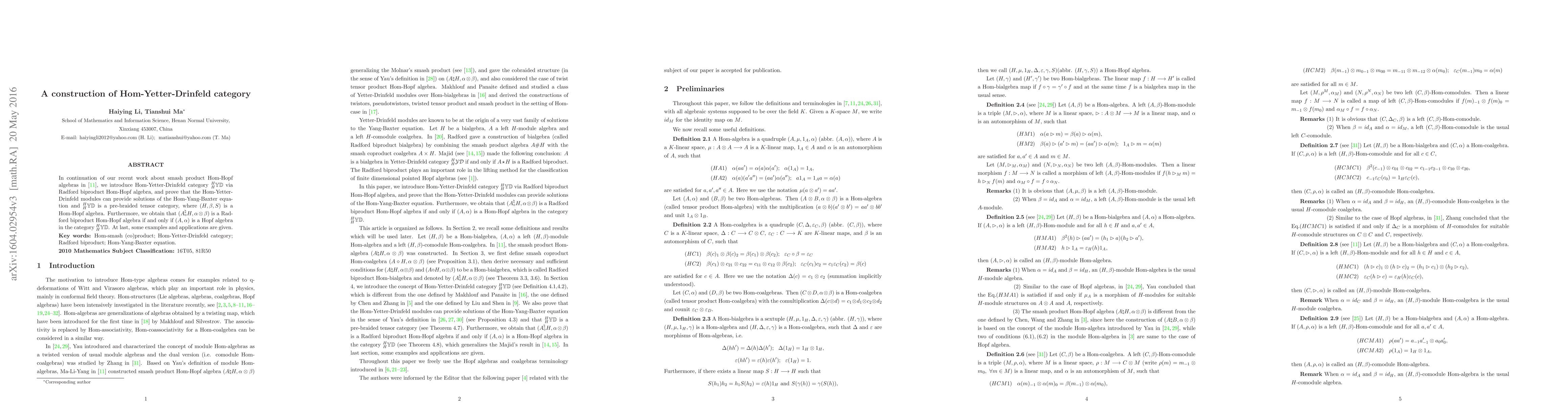 This paper constructs the Hom-Yetter-Drinfeld category $_H^H{\mathbb{YD}}$ using Radford biproduct Hom-Hopf algebras, demonstrating that Hom-Yetter-Drinfeld modules solve the Hom-Yang-Baxter equation and that $_H^H{\mathbb{YD}}$ is a pre-braided tensor category.