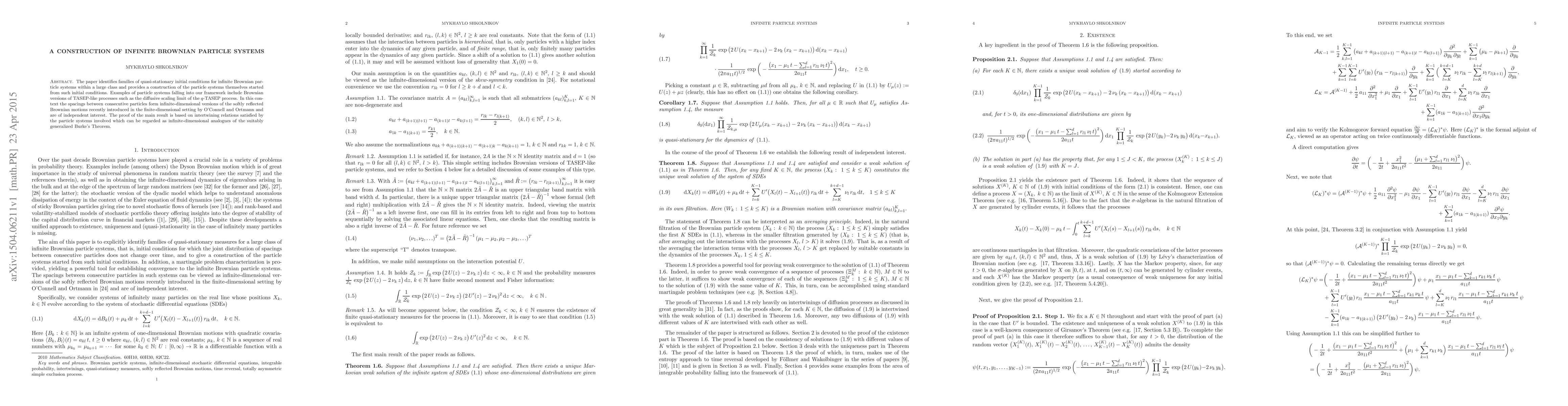 The paper constructs infinite Brownian particle systems with quasi-stationary initial conditions and demonstrates intertwining relations analogous to Burke's Theorem, providing infinite-dimensional versions of softly reflected Brownian motions. Examples include diffusive limits of TASEP-like processes.
