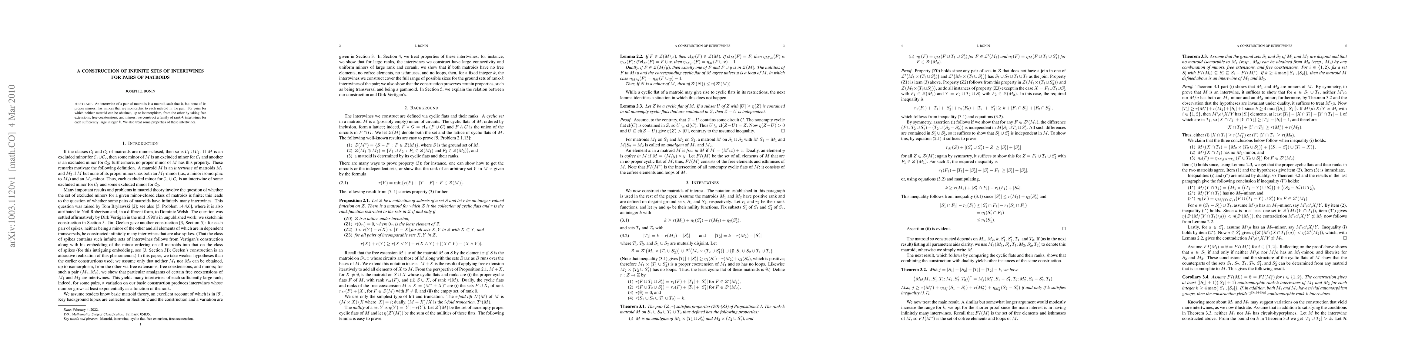 Researchers construct a family of rank-k intertwines for pairs of matroids that cannot be obtained from each other through minor operations, providing a new tool for studying these structures. These results have implications for understanding the properties and behavior of matroids.