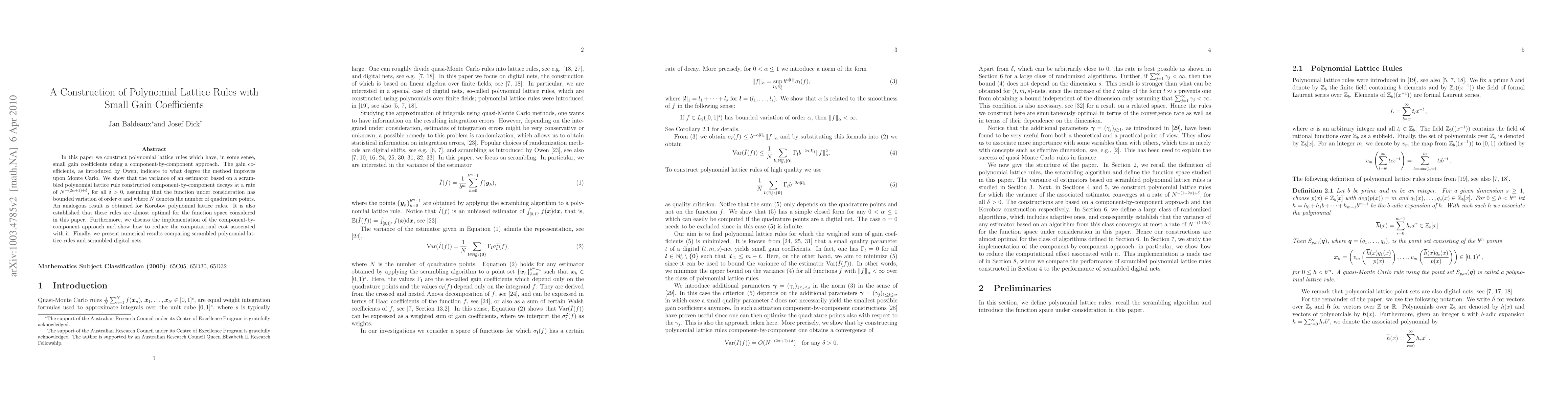 This paper constructs polynomial lattice rules with small gain coefficients using a component-by-component approach, demonstrating variance decay at $N^{-(2\alpha + 1) +\delta}$ for functions with bounded fractional variation. It also shows near-optimality and discusses computational cost reduction.