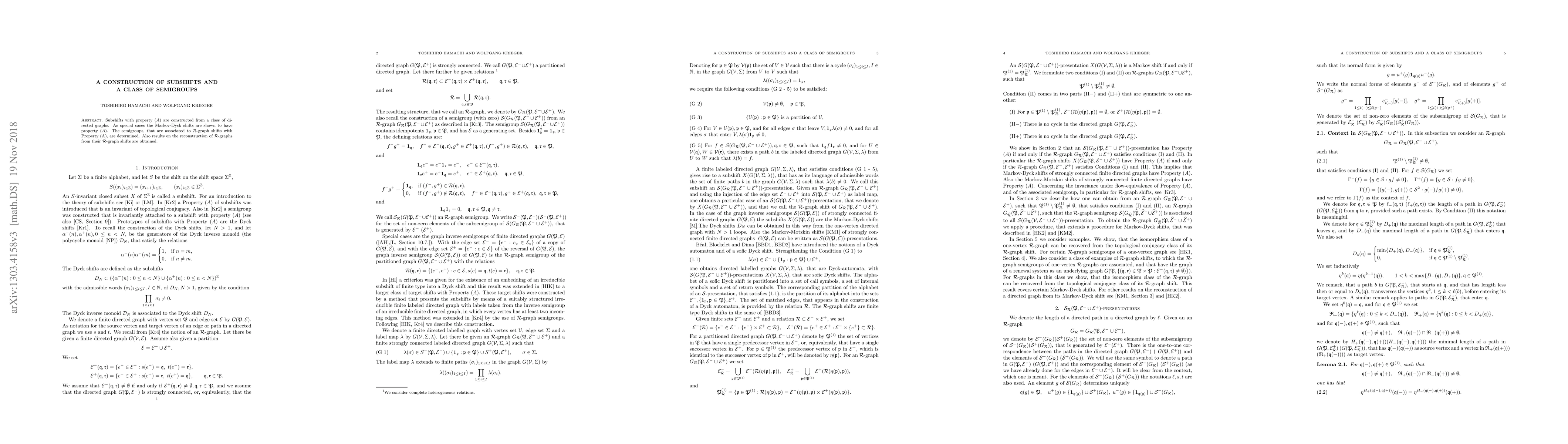 Subshifts with property $(A)$ are constructed from a class of directed graphs. As special cases the Markov-Dyck shifts are shown to have property $(A)$. The semigroups, that are associated to $\mathcal R$-graph shifts with Property (A), are determined. Also results on the reconstruction of $\mathcal R$-graphs from their $\mathcal R$-graph shifts are obtained.
