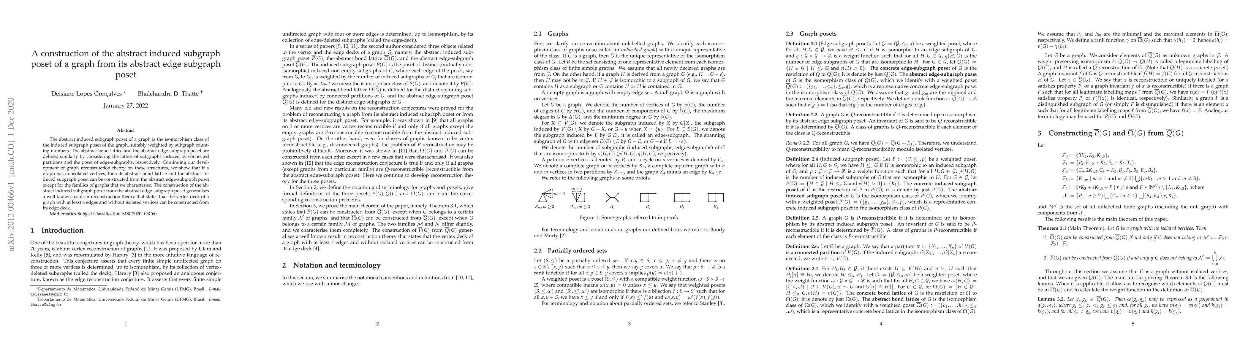 This paper develops a method to construct the abstract induced subgraph poset of a graph from its abstract edge-subgraph poset, demonstrating that this is possible for graphs without isolated vertices, except for specific characterized families. The construction generalizes a known result in graph reconstruction theory.