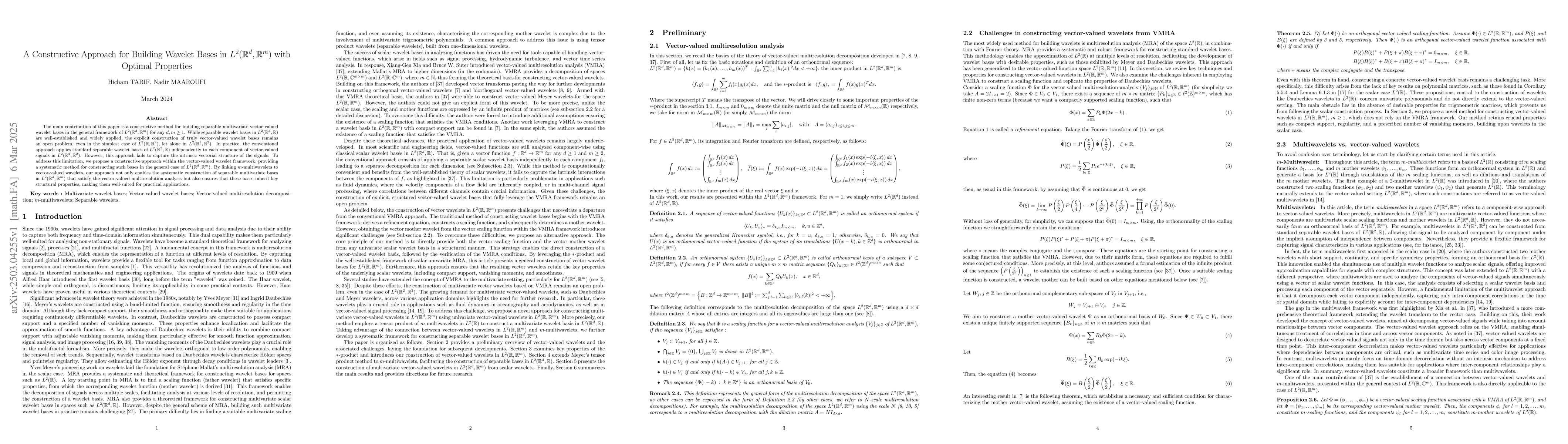 The paper proposes a constructive approach linking m-multiwavelets to vector-valued wavelets, enabling systematic construction of separable multivariate bases in L²(ℝ^d, ℝ^m) that satisfy vector-valued multiresolution analysis.