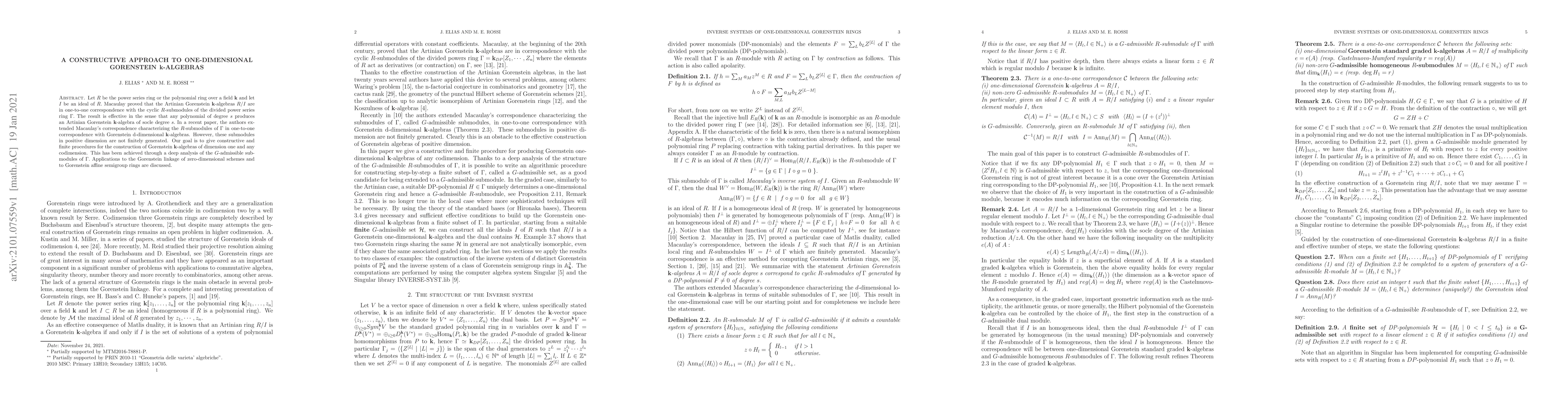 This paper develops constructive methods for constructing one-dimensional Gorenstein $k$-algebras of any codimension, addressing the non-finitely generated issue of previous approaches. The authors utilize $G$-admissible submodules of the divided power series ring $\Gamma$ to achieve these constructions, with applications to zero-dimensional scheme linkage and Gorenstein affine semigroup rings.