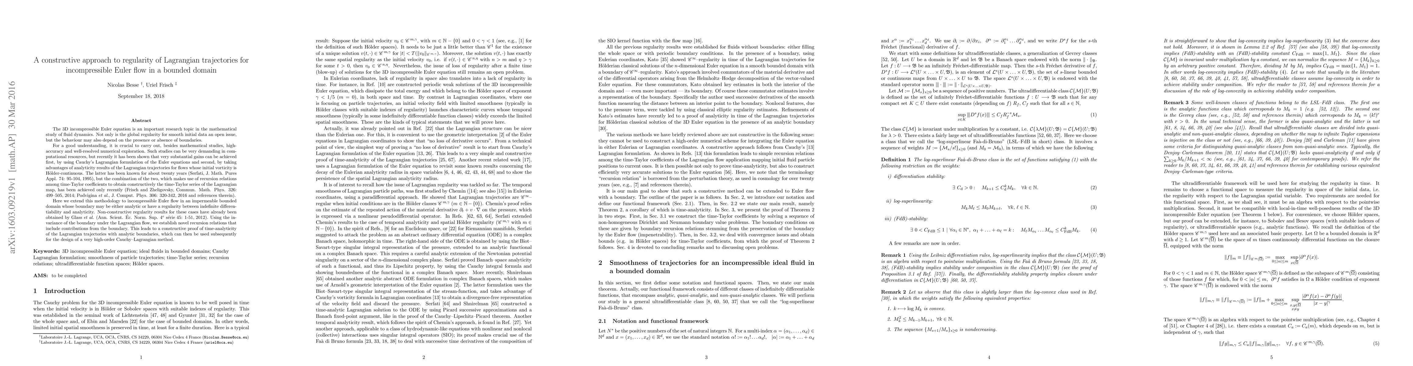 This paper develops a constructive approach to proving the regularity of Lagrangian trajectories for 3D incompressible Euler flow in bounded domains, extending recent analyticity results to flows with boundaries of varying regularity. The methodology leverages recursion relations and Cauchy's Lagrangian formulation to achieve high-order computational methods.