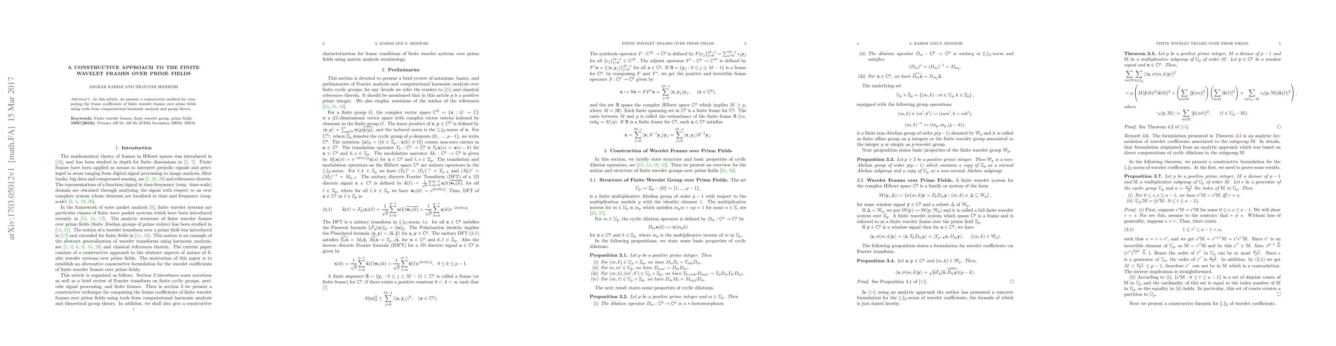 Summary: This paper introduces a novel constructive technique for determining the frame coefficients of finite wavelet frames over prime fields, leveraging computational harmonic analysis and group theory. The method provides a systematic approach to wavelet frame construction in prime field settings.