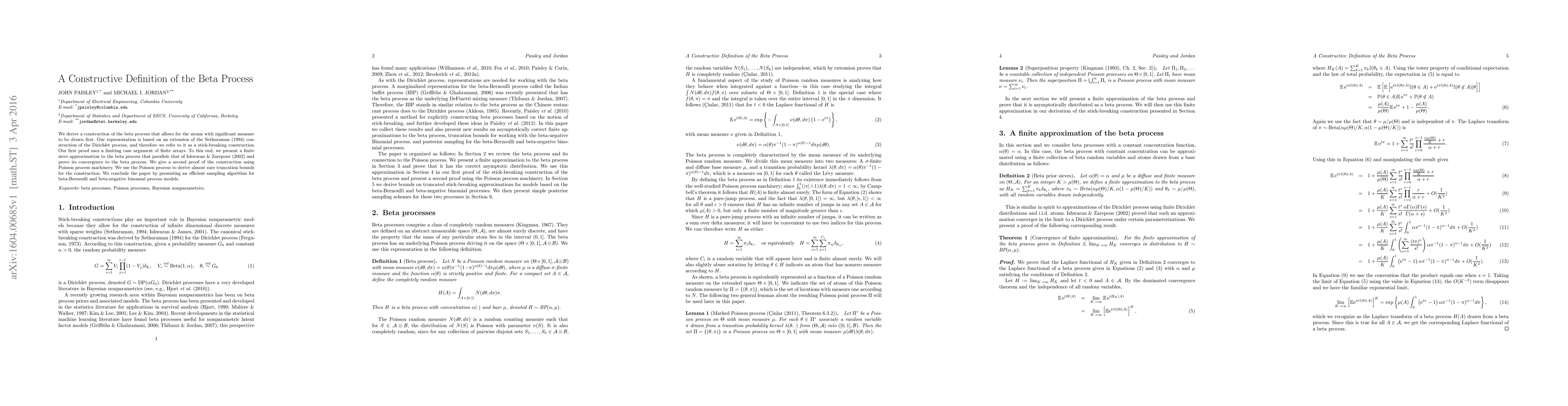 Researchers create a new method for constructing the beta process, allowing atoms with significant measure to be drawn first, and provide an efficient sampling algorithm for related models.
