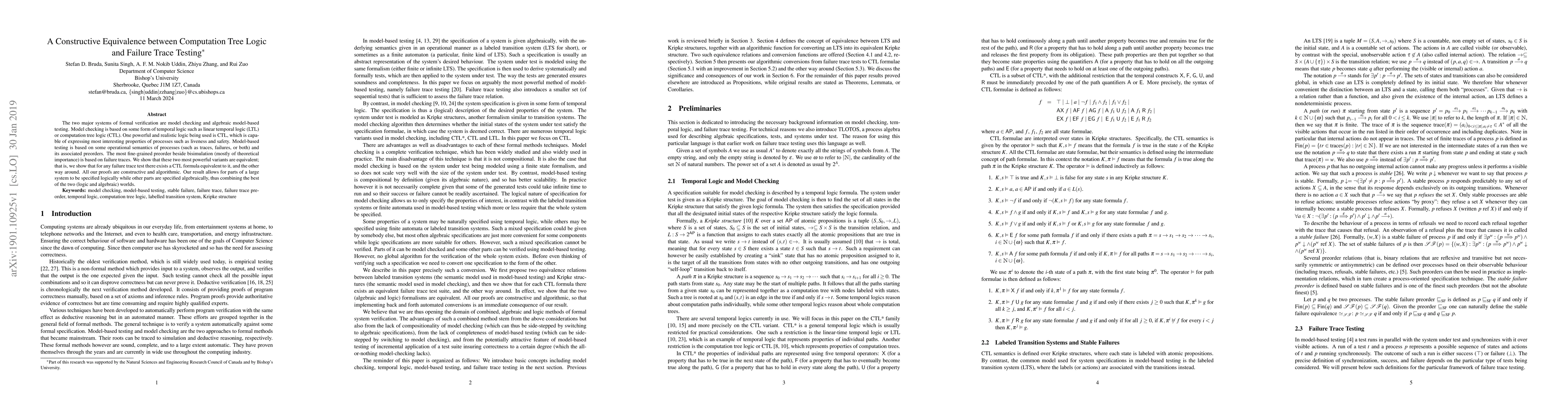 The two major systems of formal verification are model checking and algebraic model-based testing. Model checking is based on some form of temporal logic such as linear temporal logic (LTL) or computation tree logic (CTL). One powerful and realistic logic being used is CTL, which is capable of expressing most interesting properties of processes such as liveness and safety. Model-based testing is based on some operational semantics of processes (such as traces, failures, or both) and its associated preorders. The most fine-grained preorder beside bisimulation (mostly of theoretical importance) is based on failure traces. We show that these two most powerful variants are equivalent; that is, we show that for any failure trace test there exists a CTL formula equivalent to it, and the other way around. All our proofs are constructive and algorithmic. Our result allows for parts of a large system to be specified logically while other parts are specified algebraically, thus combining the best of the two (logic and algebraic) worlds.