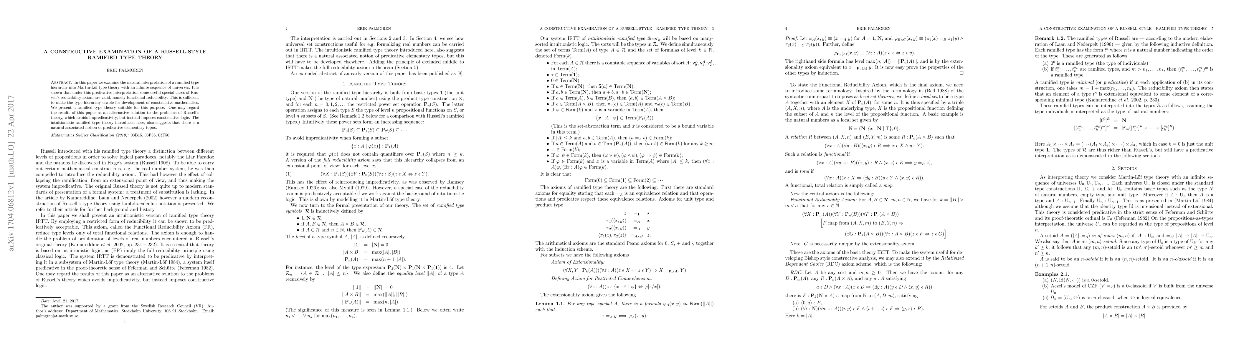 Researchers develop an alternative to Russell's type theory, creating a constructive ramified type theory suitable for constructive mathematics, which avoids impredicativity but imposes constructive logic.