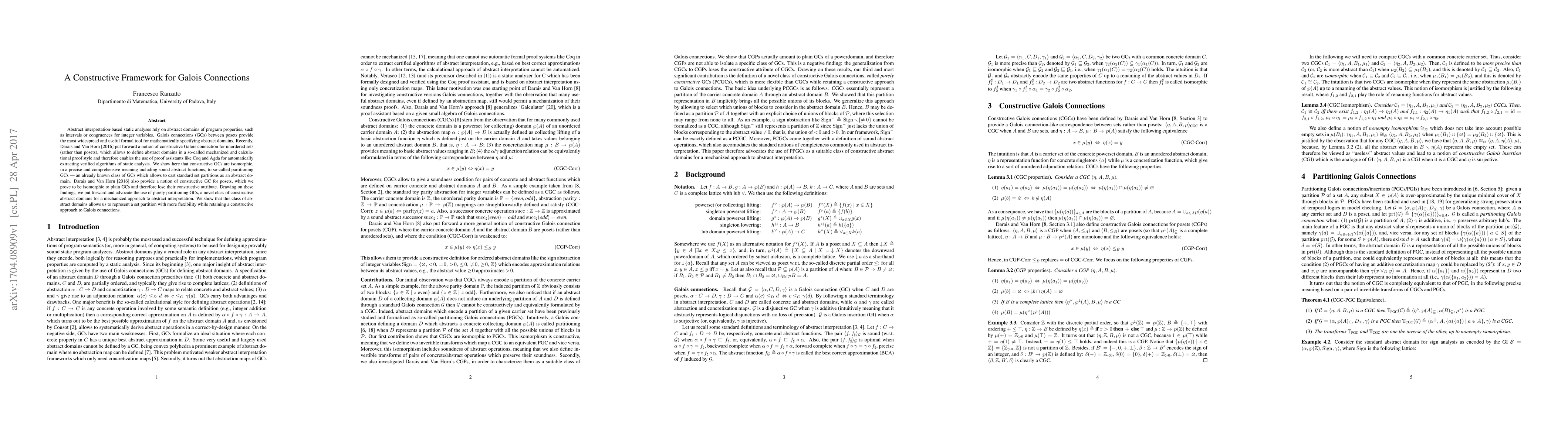 This paper proposes a novel class of constructive abstract domains using partitioning Galois connections, demonstrating their isomorphism with Darais and Van Horn's constructive Galois connections for unordered sets. It argues that partitioning GCs offer more flexibility and a mechanized approach to abstract interpretation.
