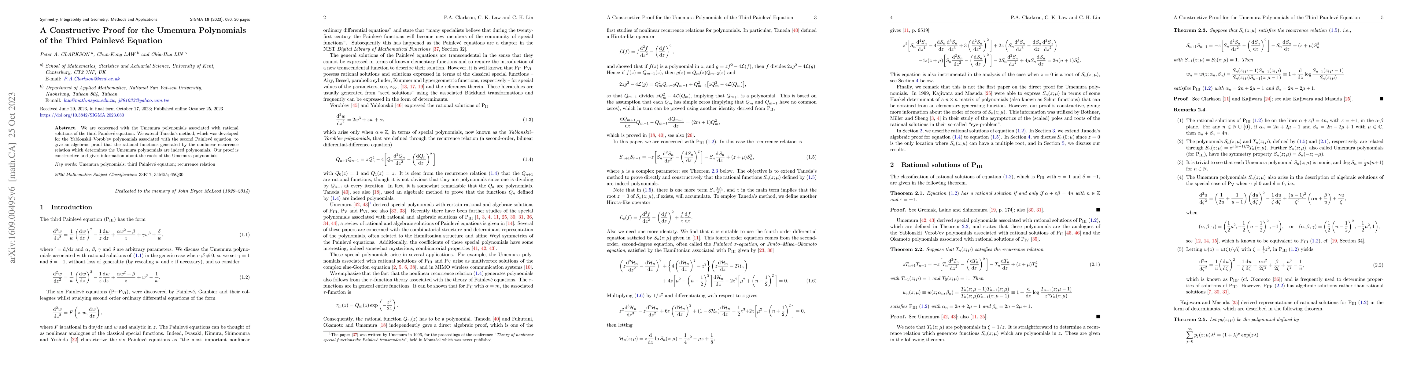 This paper extends Taneda's method to provide an algebraic proof that the rational functions generated by the recurrence relation for Umemura polynomials of the third Painlevé equation are indeed polynomials, offering constructive insights into the roots of these polynomials.