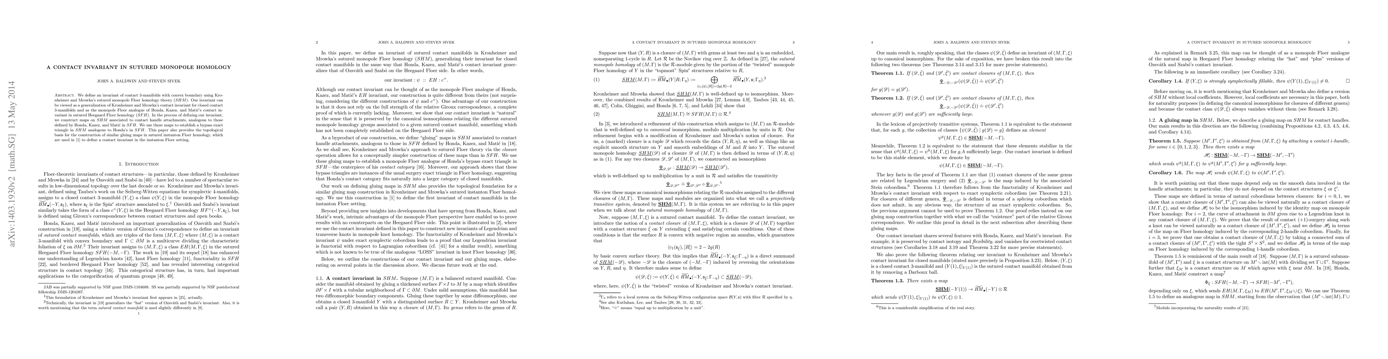 We define an invariant of contact 3-manifolds with convex boundary using Kronheimer and Mrowka's sutured monopole Floer homology theory (SHM). Our invariant can be viewed as a generalization of Kronheimer and Mrowka's contact invariant for closed contact 3-manifolds and as the monopole Floer analogue of Honda, Kazez, and Mati\'c's contact invariant in sutured Heegaard Floer homology (SFH). In the process of defining our invariant, we construct maps on SHM associated to contact handle attachments, analogous to those defined by Honda, Kazez, and Mati\'c in SFH. We use these maps to establish a bypass exact triangle in SHM analogous to Honda's in SFH. This paper also provides the topological basis for the construction of similar gluing maps in sutured instanton Floer homology, which are used in [1] to define a contact invariant in the instanton Floer setting.