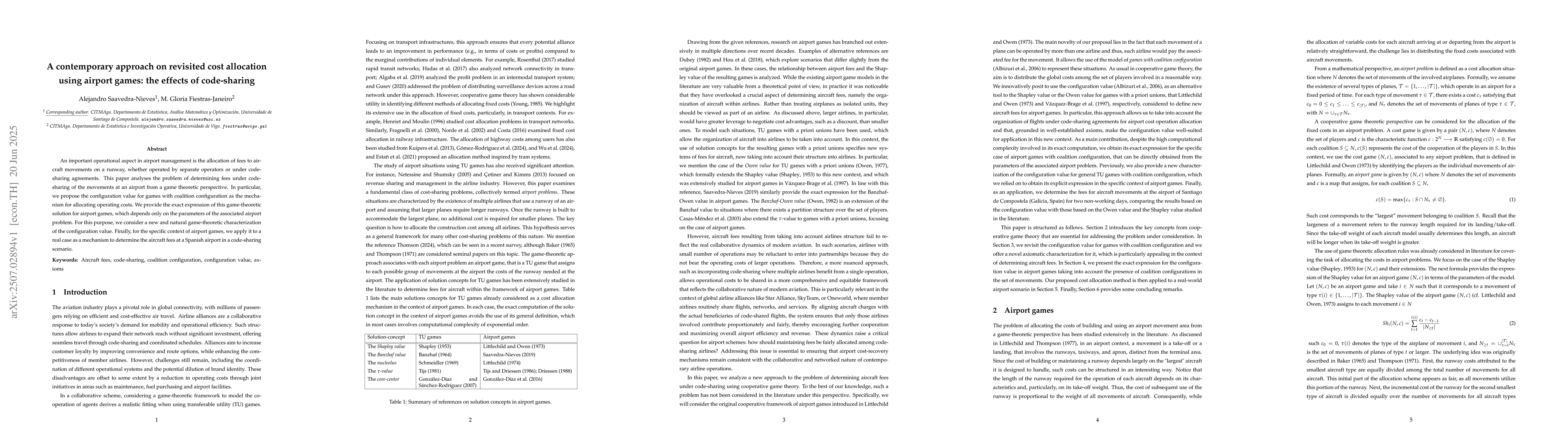 An important operational aspect in airport management is the allocation of fees to aircraft movements on a runway, whether operated by separate operators or under code-sharing agreements. This paper analyses the problem of determining fees under code-sharing of the movements at an airport from a game theoretic perspective. In particular, we propose the configuration value for games with coalition configuration as the mechanism for allocating operating costs. We provide the exact expression of this game-theoretic solution for airport games, which depends only on the parameters of the associated airport problem. For this purpose, we consider a new and natural game-theoretic characterization of the configuration value. Finally, for the specific context of airport games, we apply it to a real case as a mechanism to determine the aircraft fees at a Spanish airport in a code-sharing scenario.