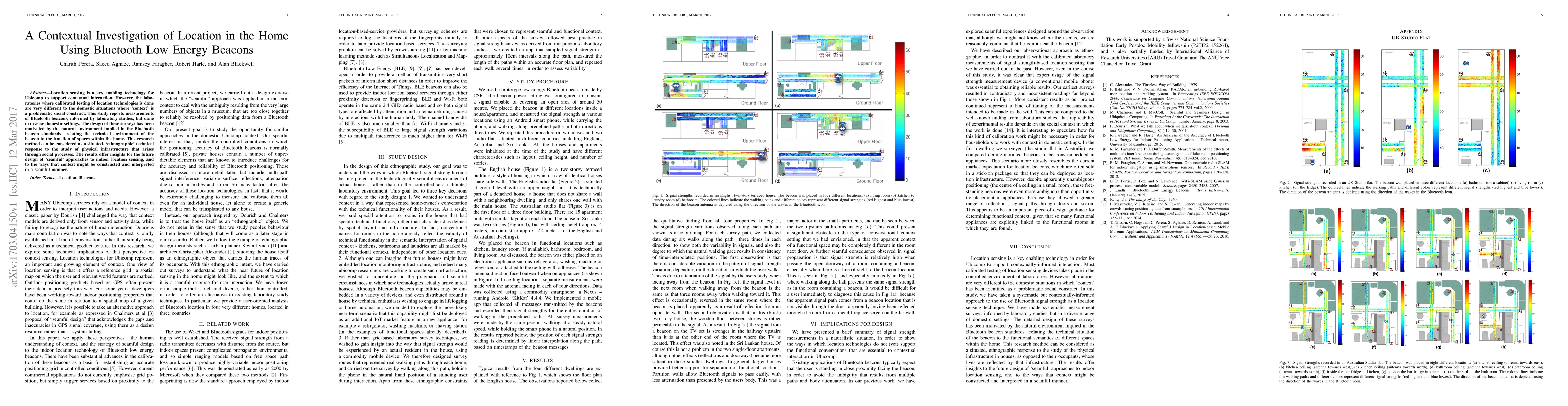 This study investigates the use of Bluetooth Low Energy beacons for indoor location sensing in diverse domestic settings, providing insights into how context is socially constructed and interpreted. The findings aim to inform the design of seamless indoor location technologies.