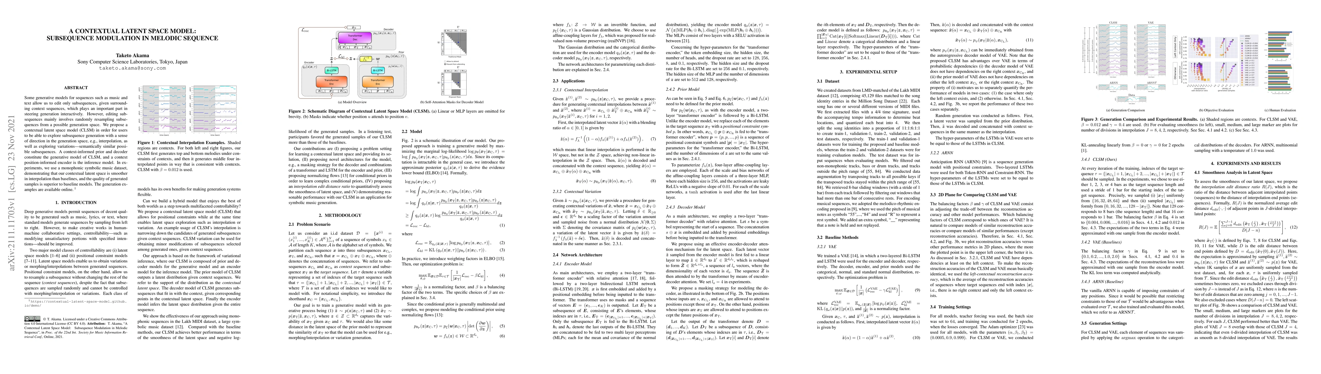 Some generative models for sequences such as music and text allow us to edit only subsequences, given surrounding context sequences, which plays an important part in steering generation interactively. However, editing subsequences mainly involves randomly resampling subsequences from a possible generation space. We propose a contextual latent space model (CLSM) in order for users to be able to explore subsequence generation with a sense of direction in the generation space, e.g., interpolation, as well as exploring variations -- semantically similar possible subsequences. A context-informed prior and decoder constitute the generative model of CLSM, and a context position-informed encoder is the inference model. In experiments, we use a monophonic symbolic music dataset, demonstrating that our contextual latent space is smoother in interpolation than baselines, and the quality of generated samples is superior to baseline models. The generation examples are available online.