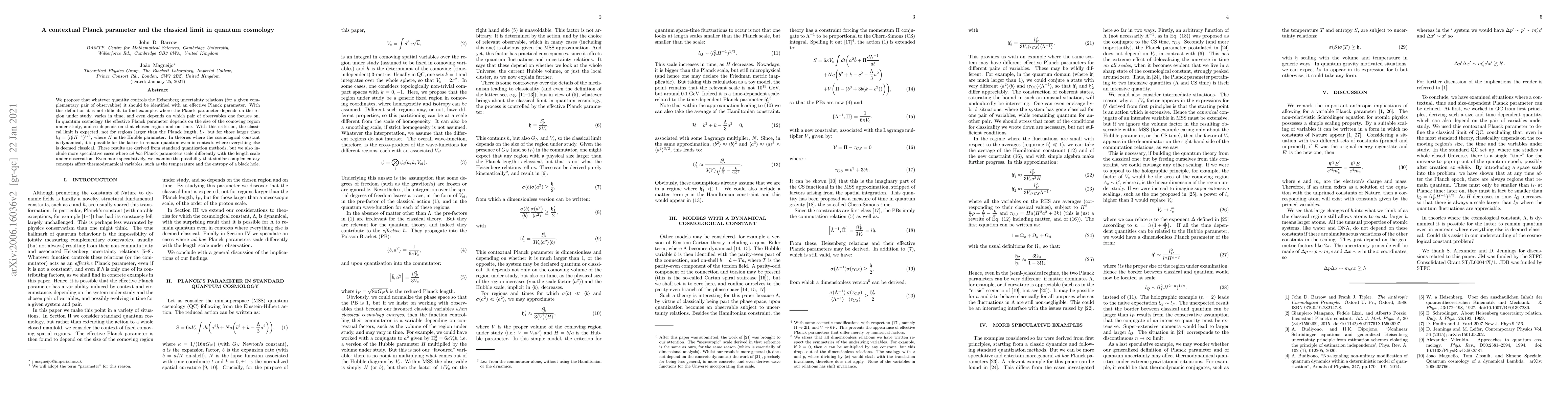 The paper introduces a contextual Planck parameter that varies with the size of the comoving region, time, and chosen observable pairs, offering a nuanced view of the classical limit in quantum cosmology.