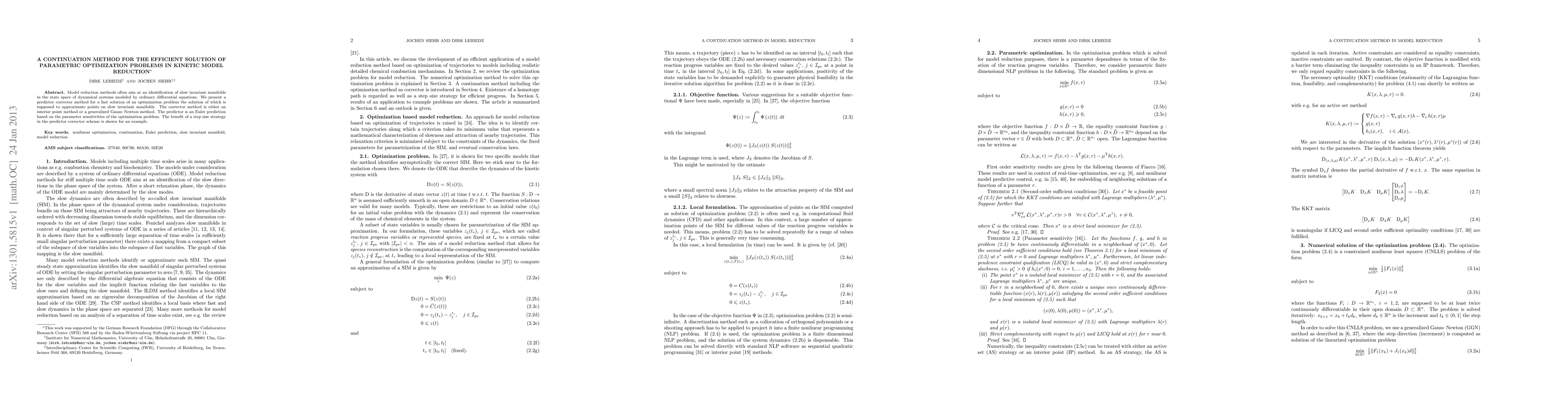 Model reduction methods often aim at an identification of slow invariant manifolds in the state space of dynamical systems modeled by ordinary differential equations. We present a predictor corrector method for a fast solution of an optimization problem the solution of which is supposed to approximate points on slow invariant manifolds. The corrector method is either an interior point method or a generalized Gauss--Newton method. The predictor is an Euler prediction based on the parameter sensitivities of the optimization problem. The benefit of a step size strategy in the predictor corrector scheme is shown for an example.