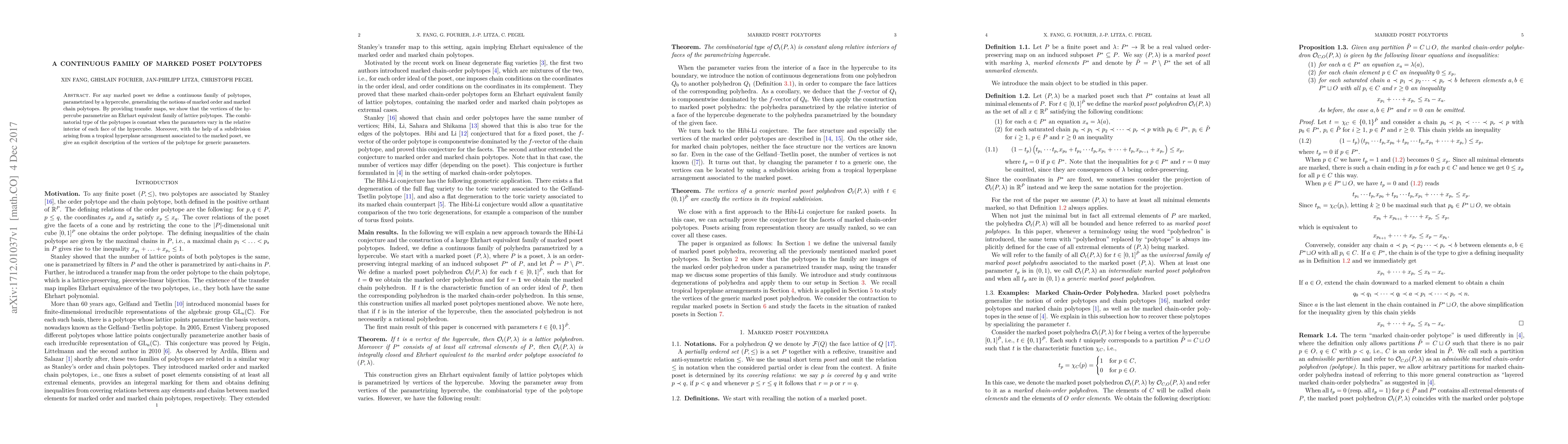 The research defines a continuous family of polytopes for marked posets, parameterized by a hypercube, generalizing marked order and marked chain polytopes. Transfer maps are provided to show that vertices of the hypercube parameterize an Ehrhart equivalent family of lattice polytopes. The combinatorial type of the polytopes remains constant when parameters vary in the relative interior of each face of the hypercube.