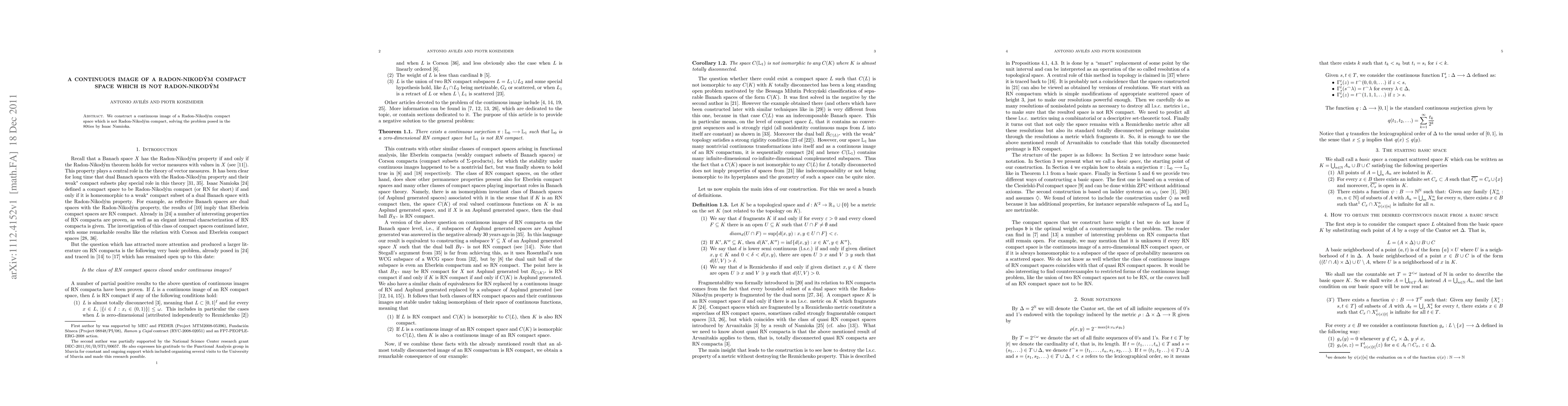 This paper constructs a continuous image of a Radon-Nikod\'ym compact space that fails to retain the Radon-Nikod\'ym property, resolving a longstanding problem posed by Isaac Namioka in the 1980s.