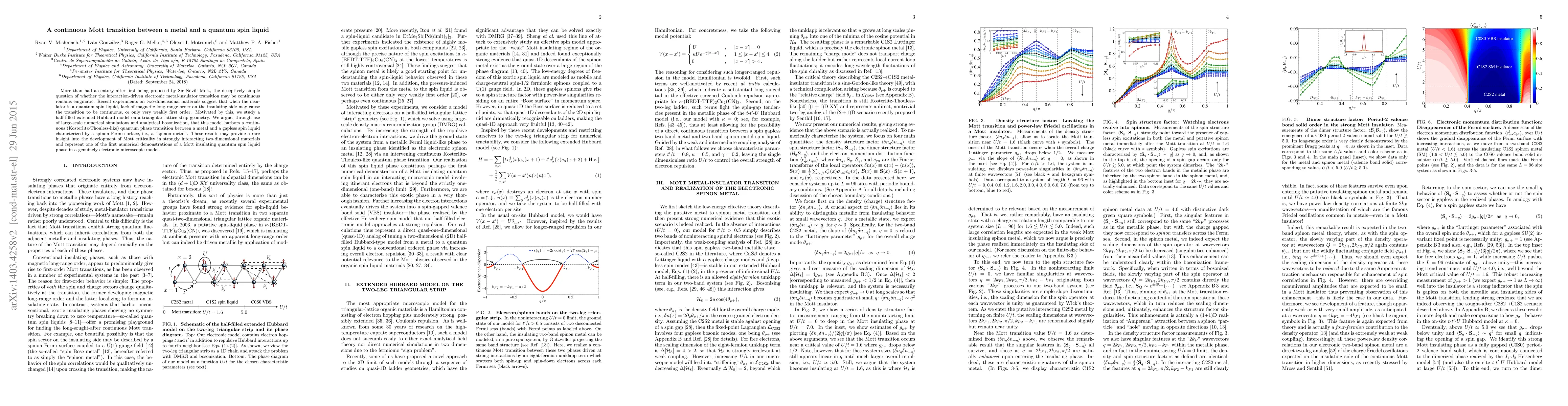 This paper investigates a continuous Mott transition between a metal and a quantum spin liquid using a half-filled extended Hubbard model on a triangular lattice. The study, supported by large-scale numerical simulations and analytical bosonization, reveals a Kosterlitz-Thouless-like quantum phase transition, suggesting a "spinon metal" state.