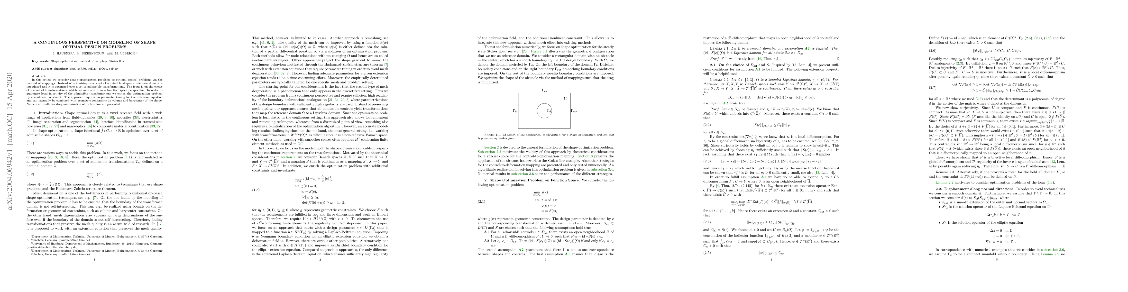 In this article we consider shape optimization problems as optimal control problems via the method of mappings. Instead of optimizing over a set of admissible shapes a reference domain is introduced and it is optimized over a set of admissible transformations. The focus is on the choice of the set of transformations, which we motivate from a function space perspective. In order to guarantee local injectivity of the admissible transformations we enrich the optimization problem by a nonlinear constraint. The approach requires no parameter tuning for the extension equation and can naturally be combined with geometric constraints on volume and barycenter of the shape. Numerical results for drag minimization of Stokes flow are presented.