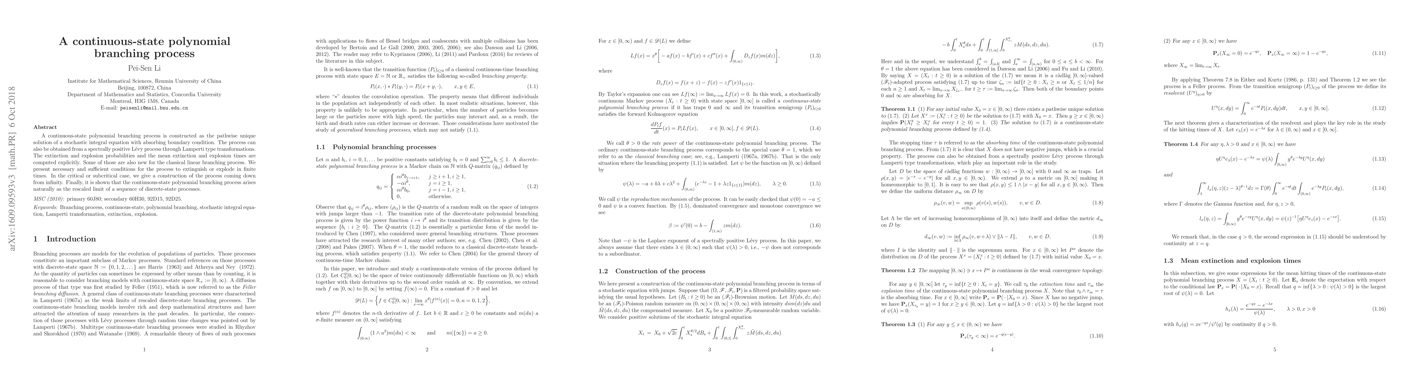 This paper constructs a continuous-state polynomial branching process as a unique solution to a stochastic integral equation, providing explicit computations for extinction and explosion probabilities and times. It also establishes necessary and sufficient conditions for finite-time extinction or explosion, and demonstrates the process's emergence as a rescaled limit of discrete-state processes.